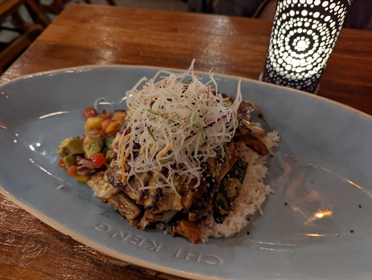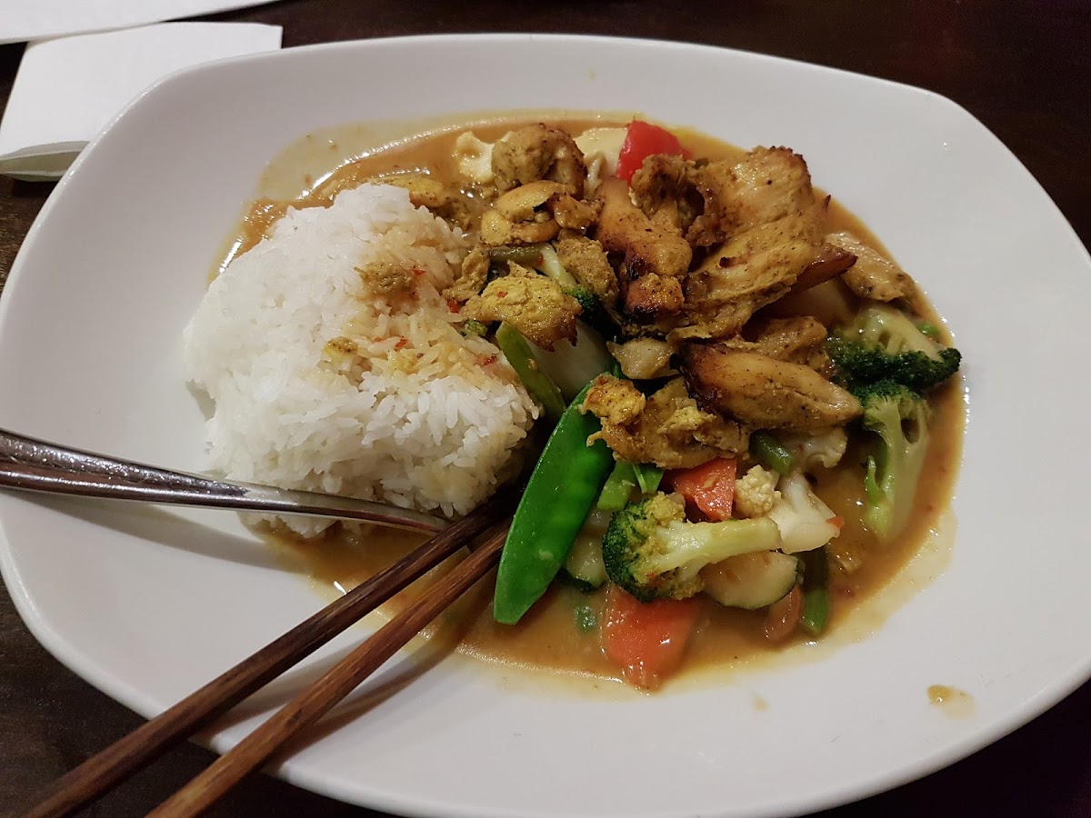 1) I ordered a rice chicken with curry. We were served quickly. The dish indicated spicy , it was a bit too spicy for my taste. The vegetables were fresh.