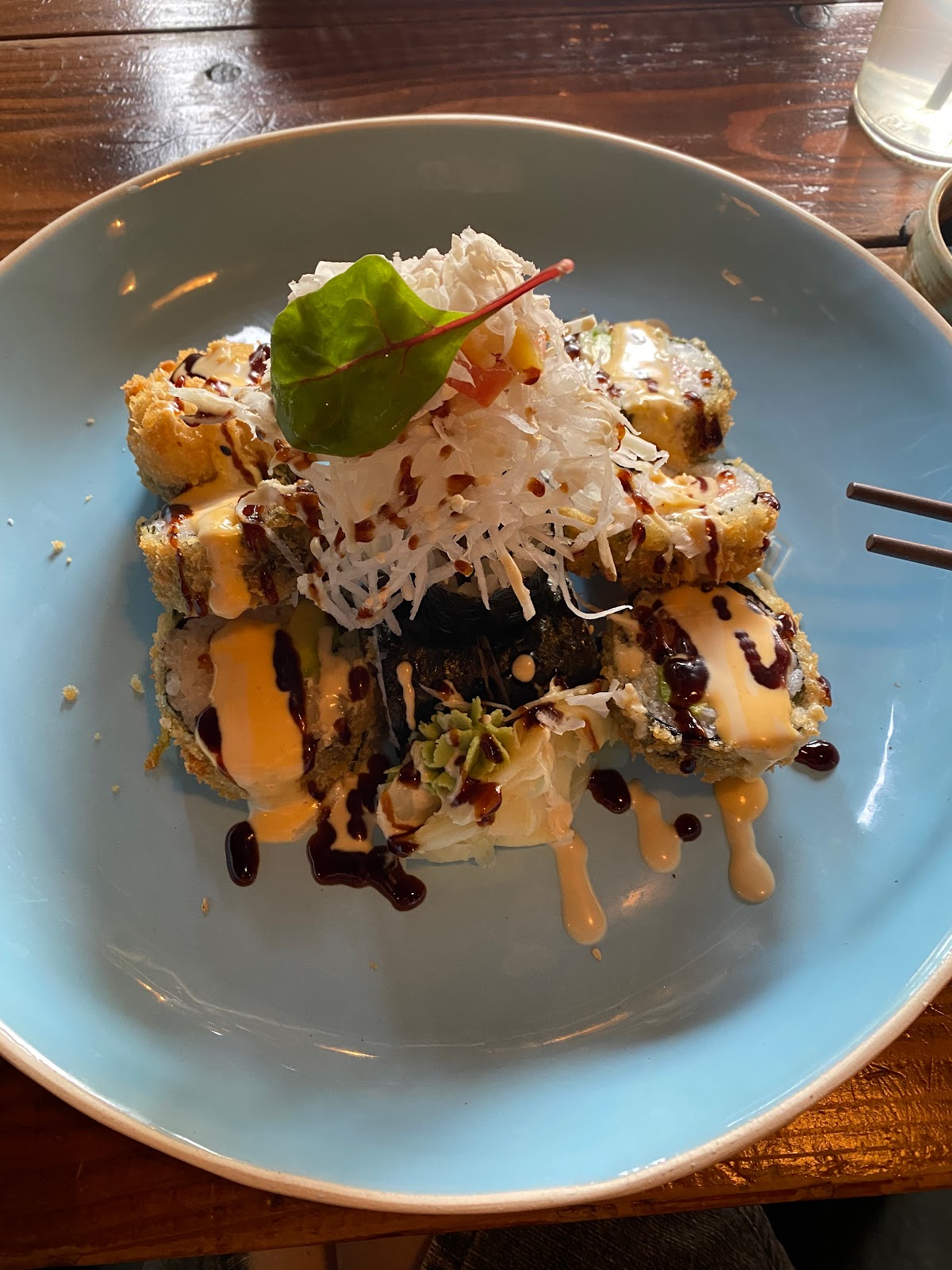Amazing fresh sushi, can recommend the soups and salads as well. The food is always displayed in a playful way with lots of yummy extras like fresh ground radish, mango bits and tasty sauces. One of my favorite fusion kitchen spots around Neukölln ????