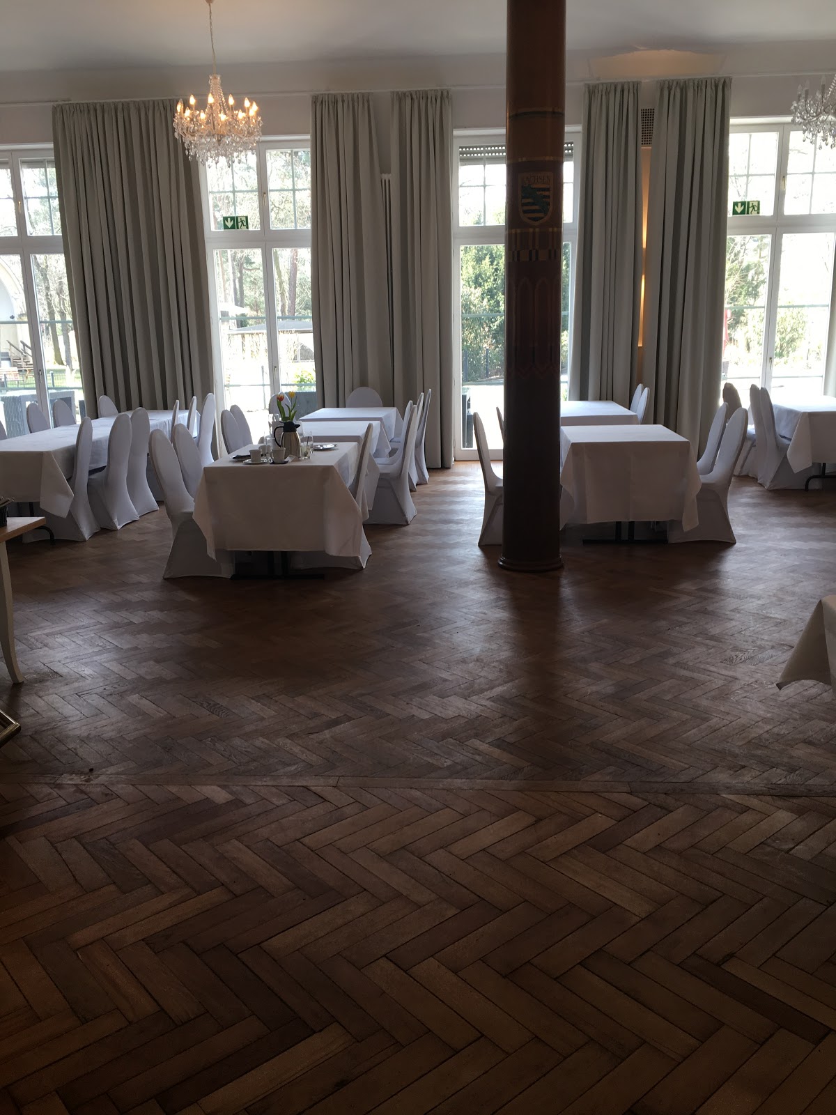 We had a nice easter brunch here. Seems like a popular place among German families and above 50 years old to have brunch. The price was reasonable 21,50 for a warm and cold buffet including dessert, a glass of Prosecco and a pot of coffee and some music. The service was extra ordinary professional and polite. The place is full of day light, has history. You cN come here by bus 139 which drops you tight in front of the gate. Seems popular for having wedding parties and round birthdays.