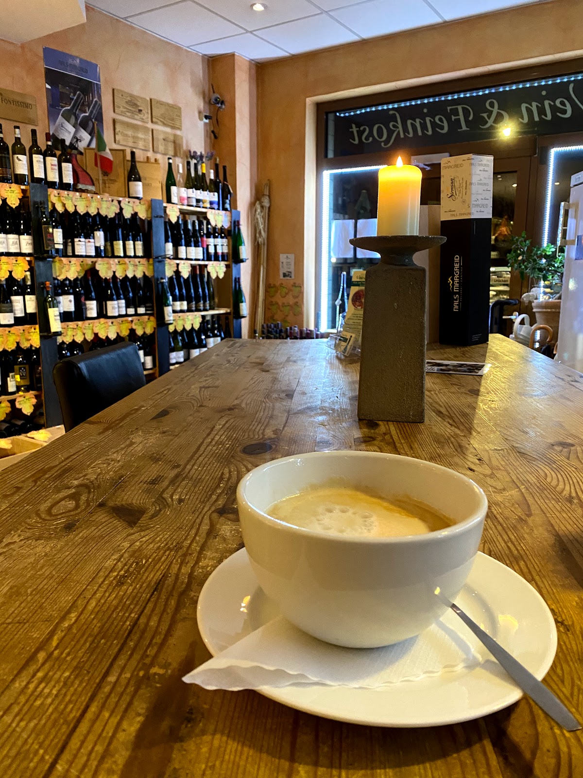 Ein super wunderbares Essen. Die Bedienung ist aufmerksam und freundlich. Die Weinauswahl ist echt überwältigend. Käse- und Wurstplatten muss man probiert haben! Man kann auch Platten zum Mitnehmen für einen italienischen Abend vorbestellen. Monatlich wechselnde Speisekarte, neben der Hauptkarte.