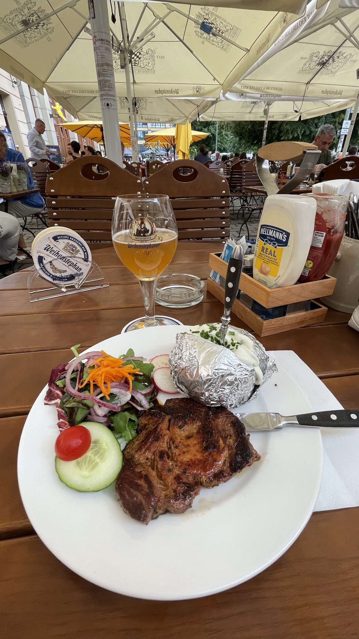 Well, really great delicious beer, but their main recommended dish for the price 15,90 euro was not delicious. Pork steak was tasty, but potatoes had no taste at all. It’s so strange, how people can spoil just normal potatoes. My recommendation is to come here for a beer and for sausages or meet with fried potatoes. Don’t order this Biersteak (on my pictures). I’m a fan of all kind of potatoes, but this one didn’t taste at all, even with salt, pepper and sause. But the place is nice and touristic, one guy sings always here and plays guitar. So anyway 4 stars. Enjoy!