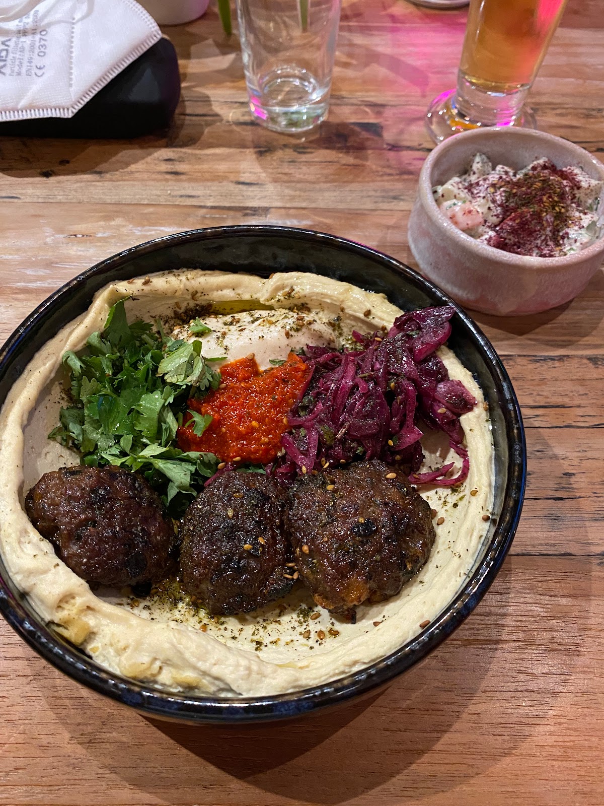 Fresh, simple and delicious Israeli/Mediterranean food. Varying daily dishes with a selection of veggie and vegan as well as meat dishes. Hummus was