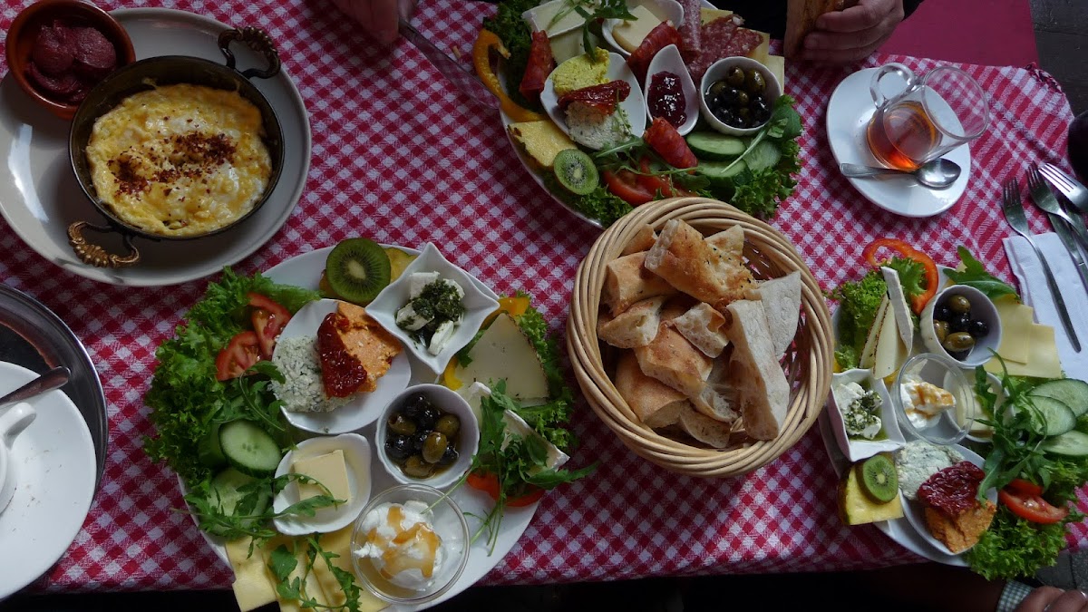 I had a delightful Turkish breakfast with seemingly every kind of cheese, 2 kinds of cold cuts, and one type of bread. I wasn't really sure how to work the marmalade and the hard-ish boiled egg in, but I managed.
