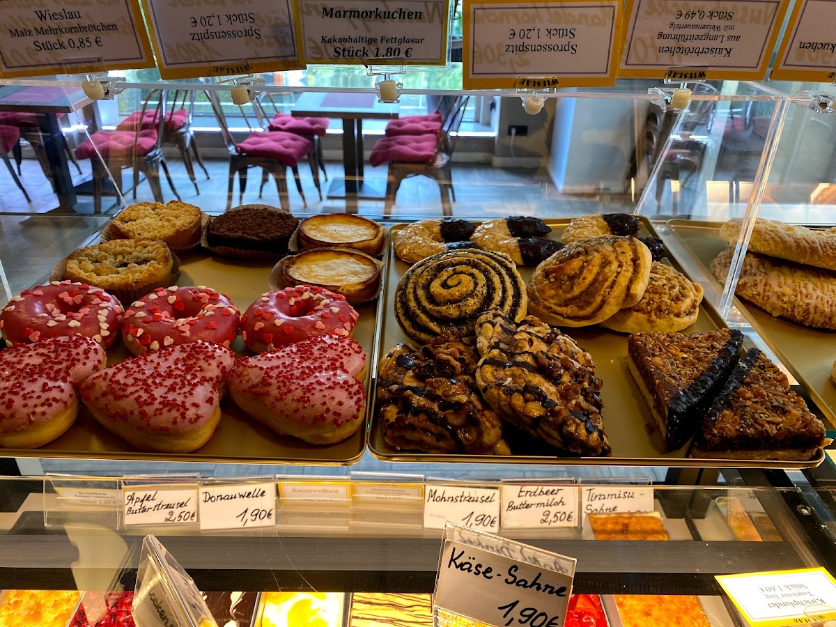 Backwaren und Kaffee gut, leider keine Toilette (nur privat) und die Inhaber können auch keine Auskunft darüber geben, wo sich die nächste Möglichkeit befindet. Für ein Lokal in dem man sitzen kann sehr schwach…