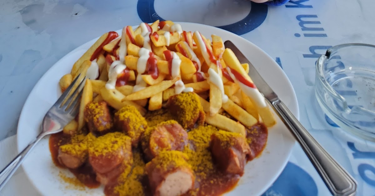 The currywurst itself was only decent, and the pommes were good, but were the kind that come frozen (not natural ones from fresh potatos).