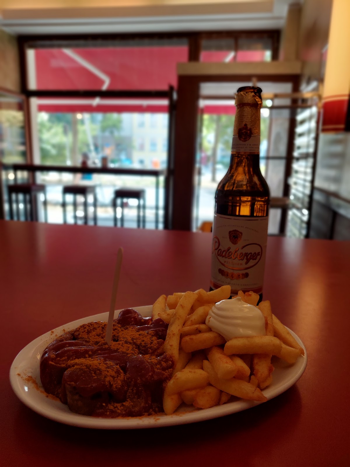It’s a bit of a different Currywurst experience as this is not your classic Imbiss but an actual restaurant with plenty of space and tables to sit at. What remains is the self-service but it sure is a more calming than average Currywurst experience. If you are new to Berlin this might be a place to start with as the tone here is not quite as rough as with the little “Büdchen” owners across town! ???? The sausage is great and the sauce is lacking a bit of a kick (spicyness) for my personal taste but that’s common with most Currywurst places. Additionally to the classics they over a couple of sides (cucumber salad, potato salad, salad, …) and some interesting sauces AND last but not least, even the vegetarians u0026 vegans are taken care of with a sausage for each category. I tried the vegan option as a dessert and - what can I say - I couldn’t be vegan… ????????u200d♂️????