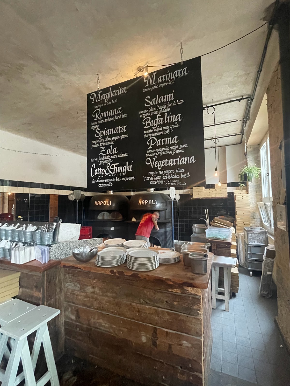 Pizza is cooked in a super hot pizza oven and it’s ready in 90 seconds.. gives a very nice crispy and a bit charred crust. Had the spicy salami and Spianata pizza and they were both great.