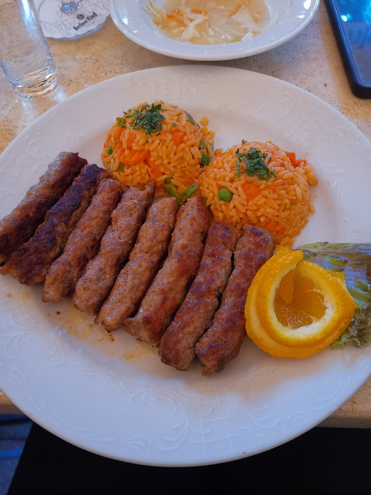 Sehr schöne Einrichtung. Die Bedienung ist sehr nett aber leider nicht ganz so Aufmerksam. Nicht jeder bekam ein Glas für Selter. Und das Wasser war schon etwas dürftig bei über 30°C. 2x 0.5l für 6-7 Personen. Wir mussten immer wieder nachfragen.