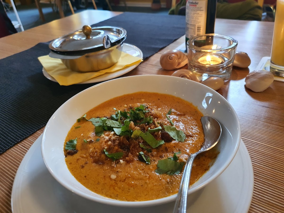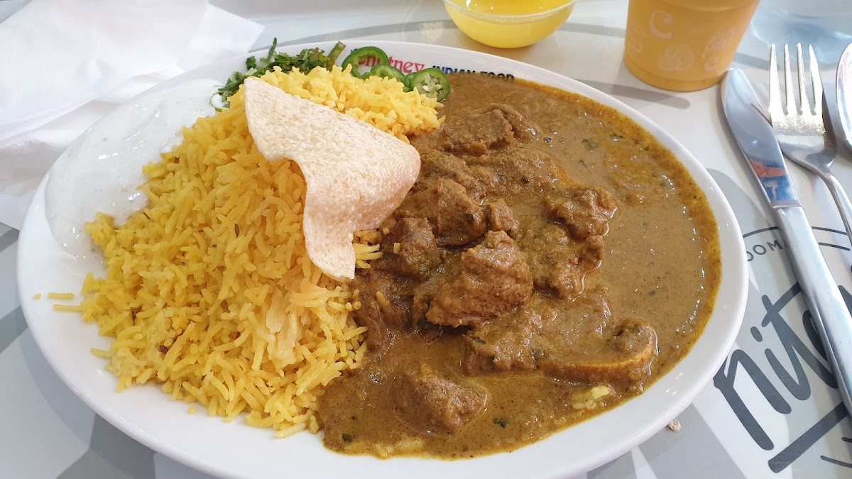 Super yummy beef curry and mango lassi. Perfect together for my late lunch.
