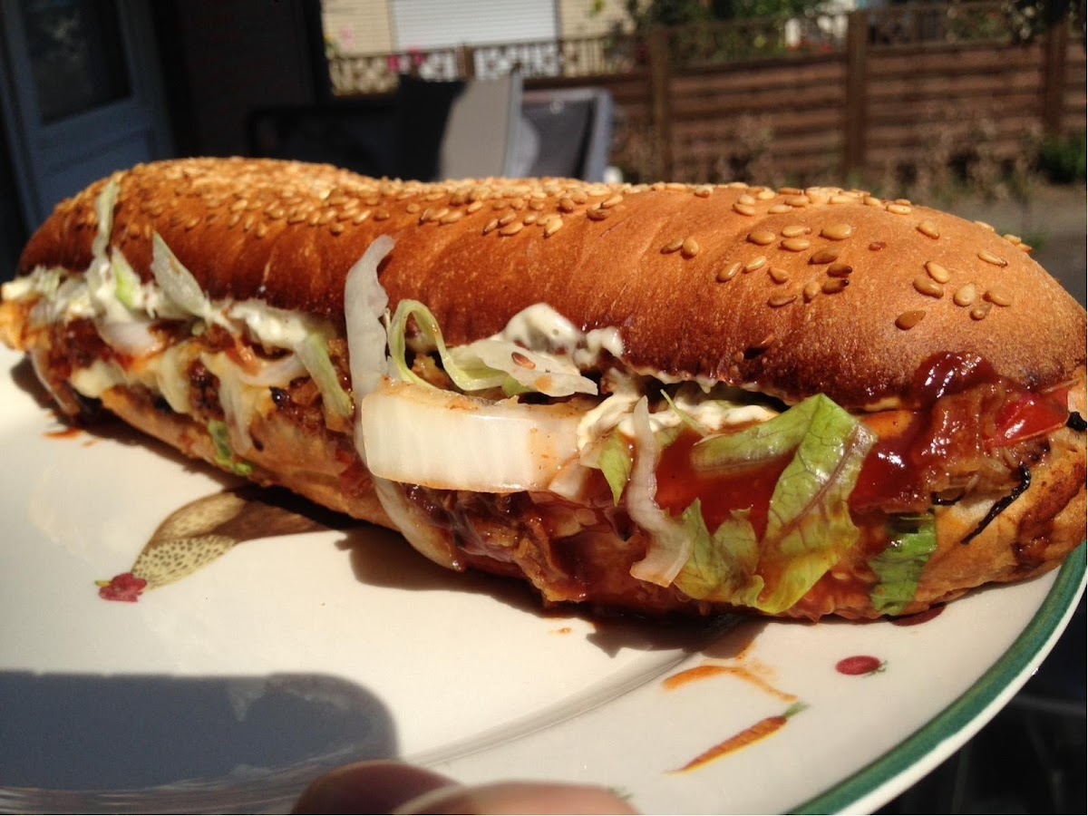 Lieferung kam innerhalb einer Stunde und Bote war freundlich. Baguette war sogar noch warm. Leider war die Unterseite matschig. Das Schnitzel war kein Schnitzel sondern gekochtes Fleisch ohne Gewürze und alles triefte praktisch vor lauter Mayonnaise. Das war so unappetitlich, dass ich die Hälfte weg tun musste.