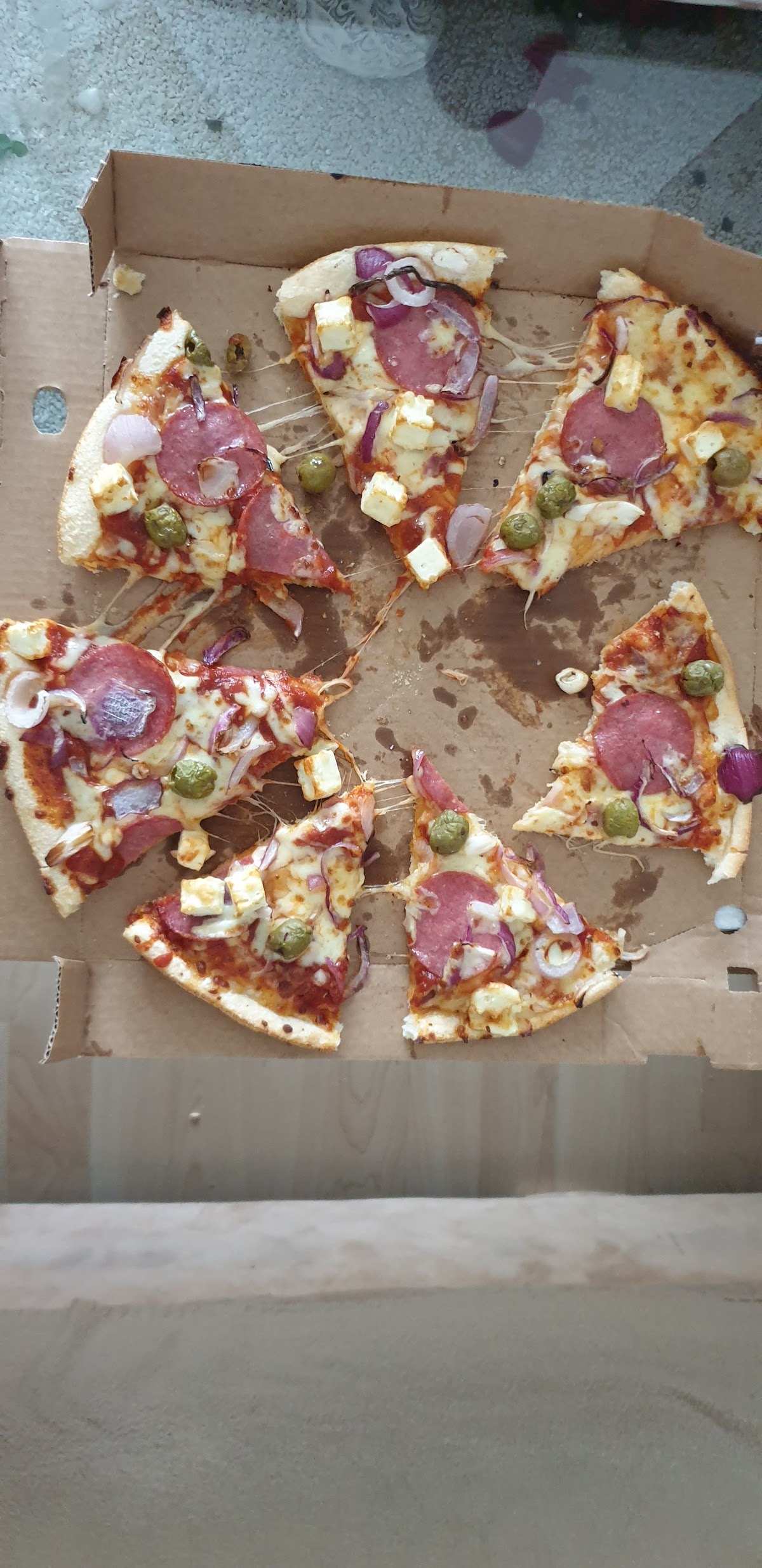 Am Essen habe ich nichts auszusetzen. Allerdings das aggressive Betteln nach Trinkgeld war sehr unpassend und dreist. Nach dem ich gesagt hatte, dass ich kein Bargeld im Haus habe, wurde sogar nach Süßigkeiten gebettelt! War nicht das erste Mal, dass ich so etwas bei Dominos erleben musste.