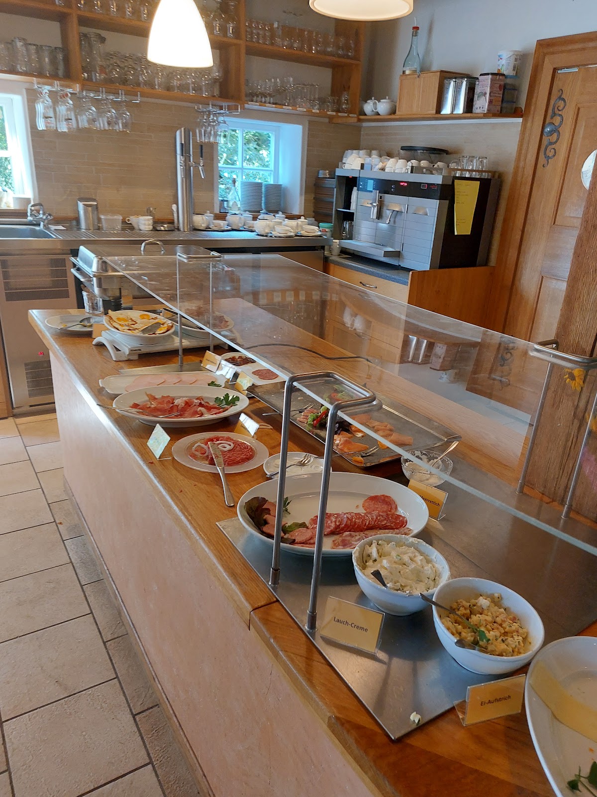 Wir haben hier mit einem reichhaltigen und qualitätsvollen Frühstücksbuffet eine sehr schöne Familien Feier gefeiert. Alle - 11 Monate bis 79 Jahre - wurden liebevoll und kompetent bedient. Das Ambiente ist auch sehr schön, dem alten Hof entsprechend und dankenswerterweise nicht überladen dekoriert. Vielen Dank für den schönen Tag, jederzeit wieder!!!