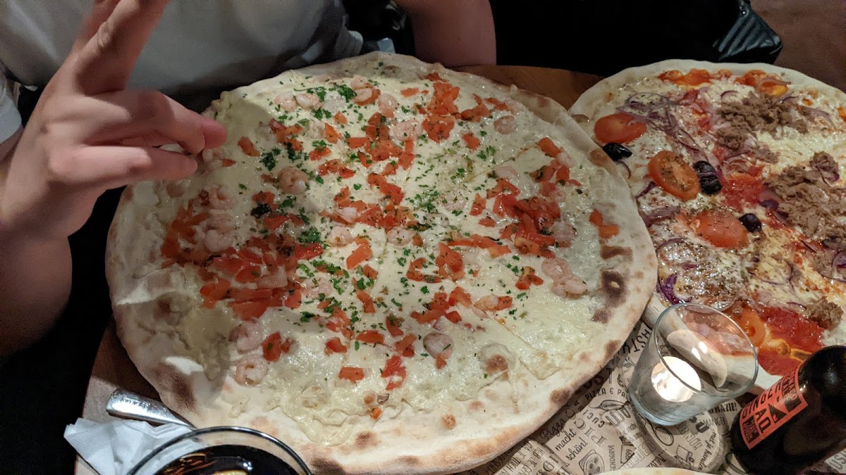 The dough was so dry .. topping was somehow poor I count 9 small pieces of shrimp or maybe less to fair , not like what i got in other restaurants in town , no need to mention names ..