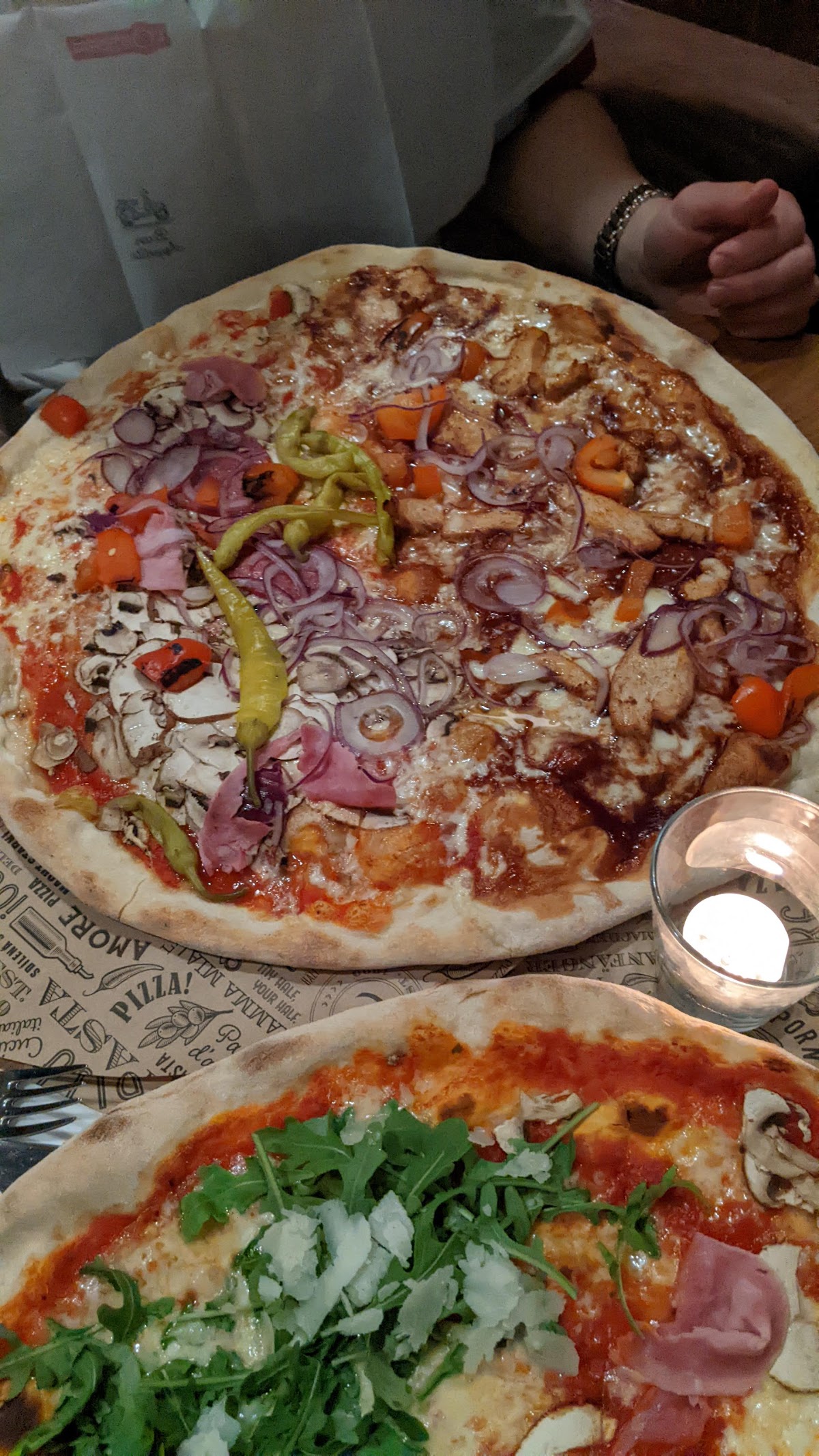 Just making this review , because my experience as I was in italy for real pizza , was just totally the other way around .. fine and tinder dough with perfect topping and exactly ( pan) style like the one you serve in your restaurant , but the quality is different