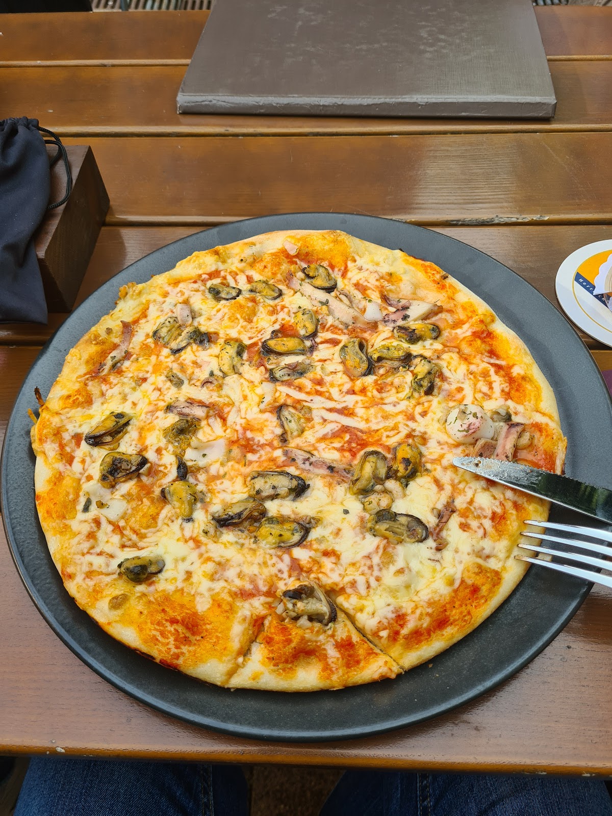 (Translated by Google) The food was fantastic, the service friendly, the place and ambience very pleasant! The pizza was very well topped, the base fluffy and the edges crispy. The salad was fresh, crunchy and nicely presented.