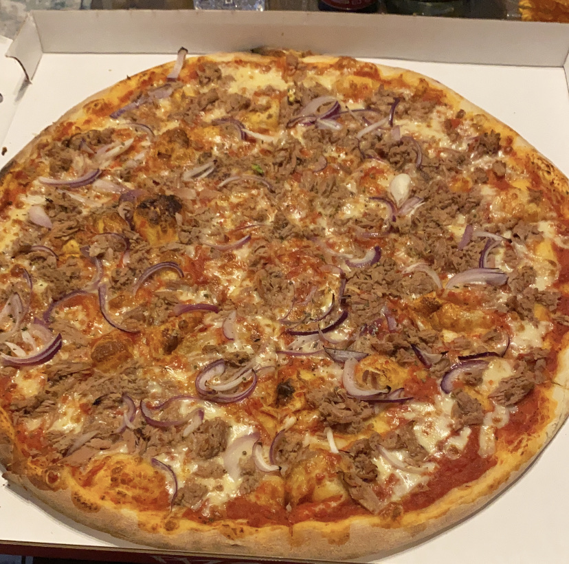 Nicht zu wenig Thunfisch aber auch nicht zu viel. Die Pizza war sehr gut gewürzt und der Teig war auf den Punkt gebacken.