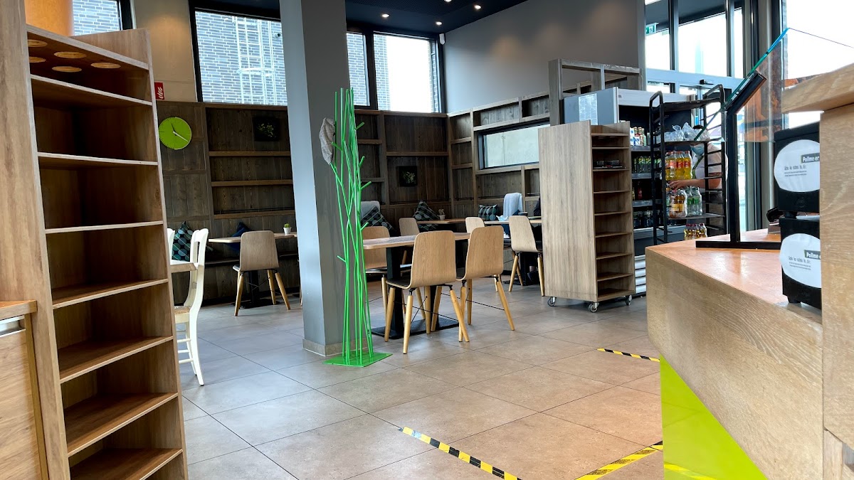 (Translated by Google) Very nice branch of Pollmeier, the service staff are very friendly. Buns are made ready immediately. There is a large outdoor patio and plenty of parking. The range is diverse