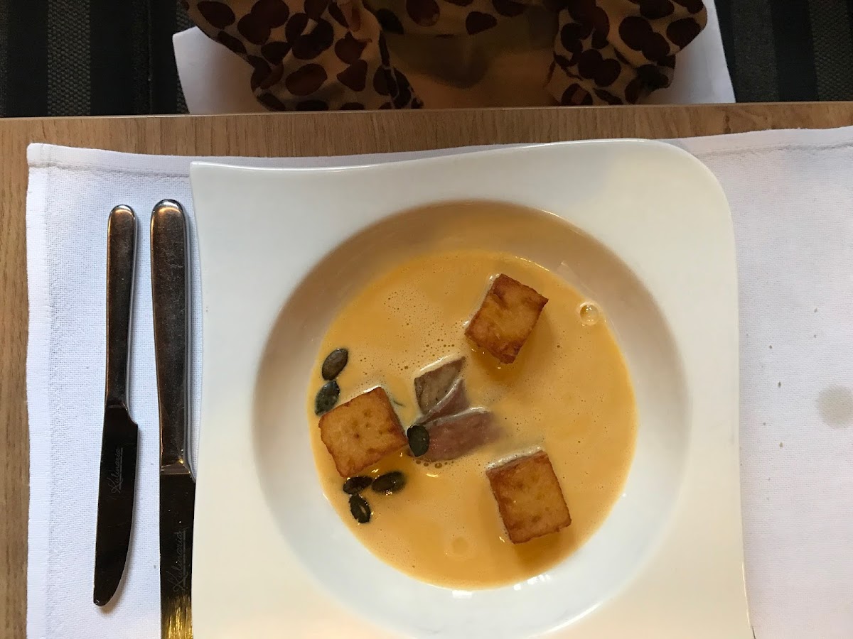 Gemütliches Ambiente trifft exquisite Küche. Der offene Kamin im Gastraum und das rustikale Ambiente eines Fachwerkhauses verströmen gleich zu Beginn eine angenehme Gemütlichkeit. Wir sind sehr aufmerksam in Empfang genommen worden und wurden den ganzen Abend über hervorragendend bedient und beraten. Zur Auswahl stehen ein sieben und ein Neun Gang Menü mit zusätzlicher Weinreise. Wir haben uns vom "kleinen Abendmahl" bezaubern lassen und waren von der Qualität, Kreativität und Geschmack durchweg begeistert. Alles in allem ein Restaurant für besondere Abende, bei dem kein Wunsch offen bleibt!