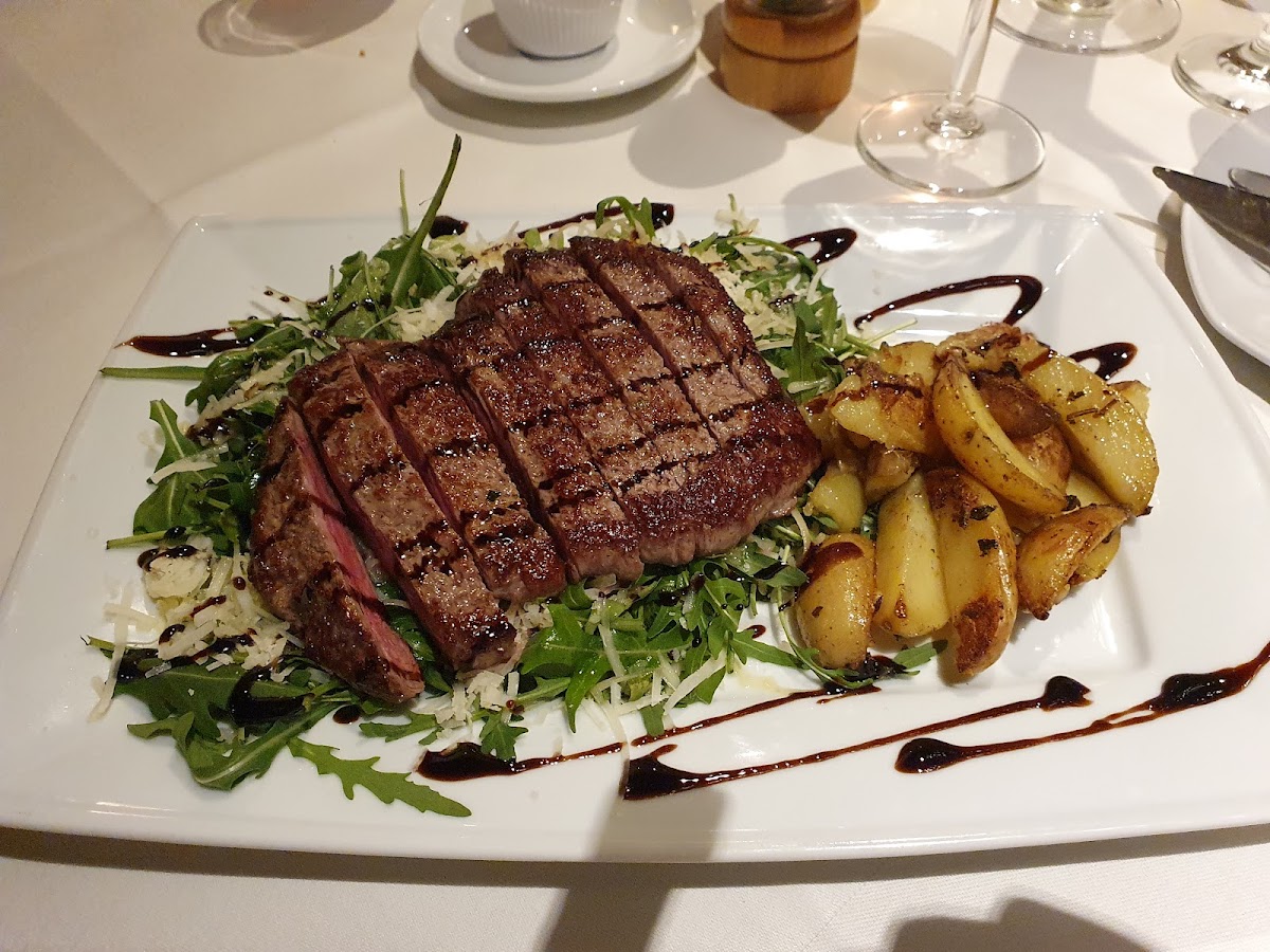 The food was fast ready and delicious. The knife was not very sharp and was difficult to cut.