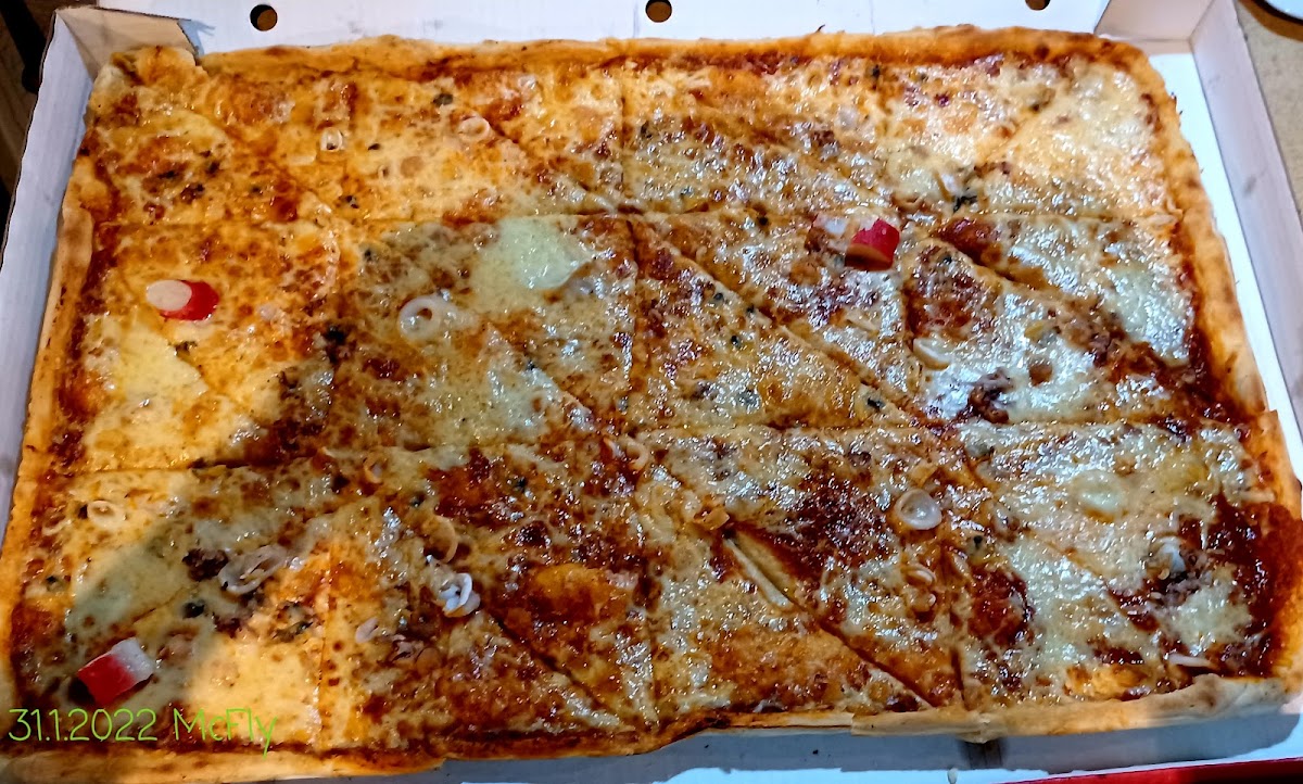 February 28th, 2022 Today it was another family pizza but in two parts! Seafood and Gyros! As already mentioned 40x60cm! Tastes really good! So the stars stay because the delivery service works and friendliness is very important here! It was also delivered on time as promised!