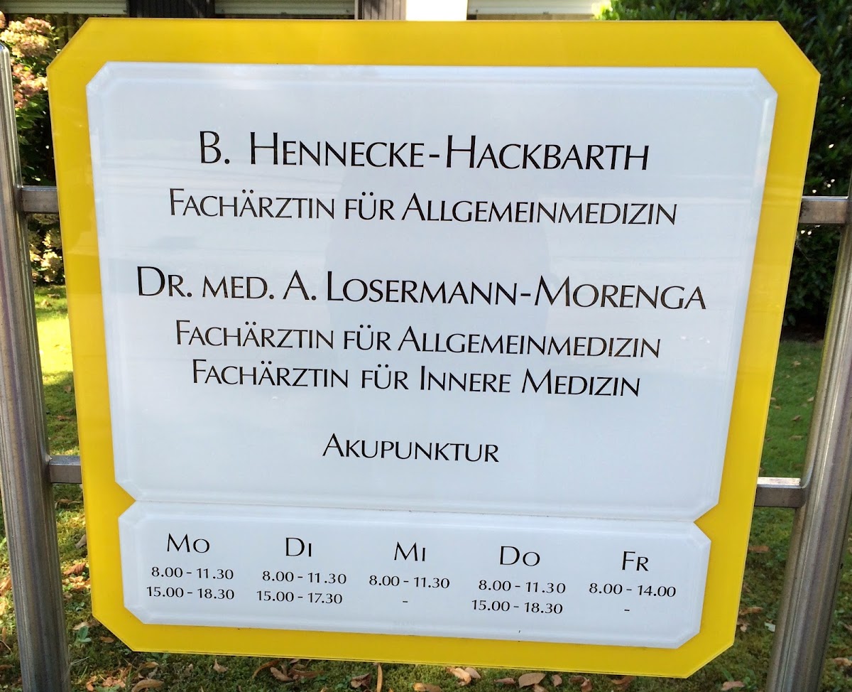 (Translated by Google) I and my mother are very happy to have switched to Ms. Hennecke-Hackbarth. You and the new doctor, Dr. Nowak are very friendly, conscientious and competent doctors and highly recommended. They take a lot of time for their patients. The practice consists of a very friendly and well-coordinated team. Everything works smoothly without long waiting times.