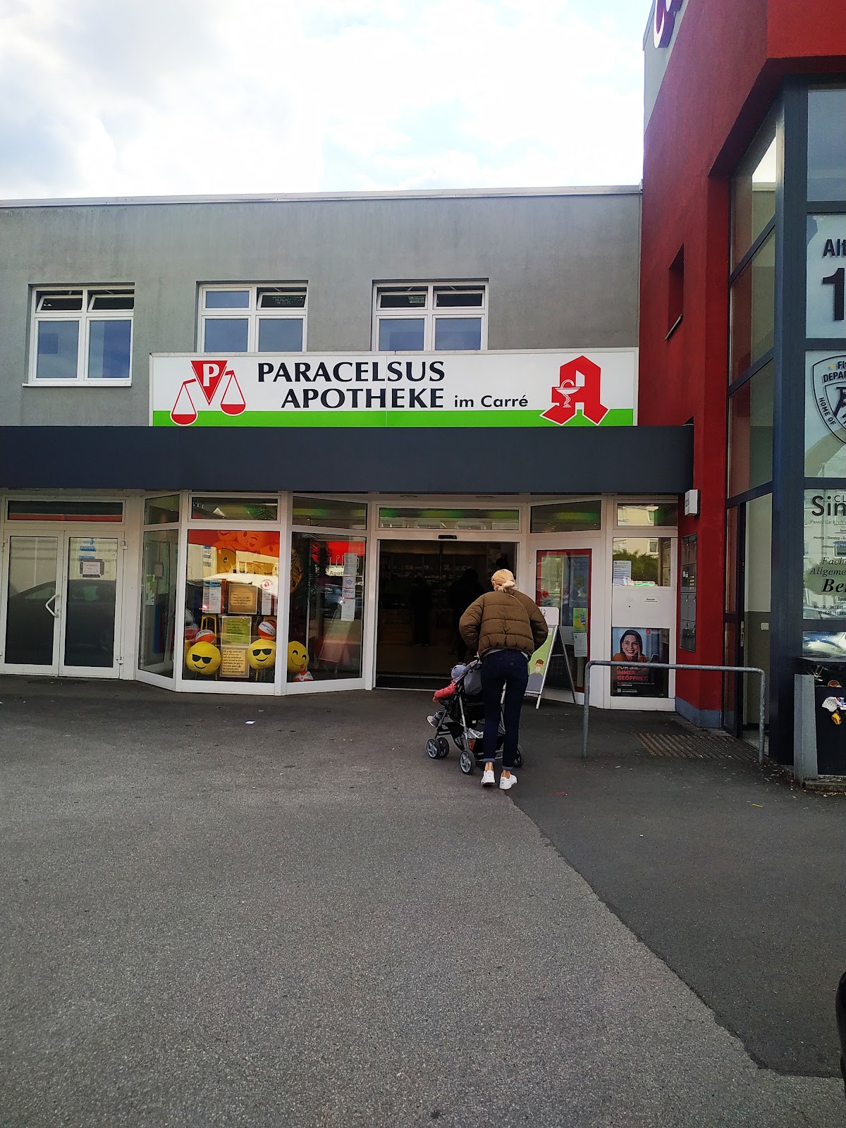 Typisches Suburbia Einkaufsecke mit Ärztehaus, Apotheke, Supermarkt, Fressnapf und Spielothek. Eigentlich öffentlicher Parkplatz wird von privaten Knöllchen Verteilern bewacht, die sehr gerne sehr schnell zulangen. Parkscheibe zwingend erforderlich. Kriegt man aber im Fressnapf geschenkt.