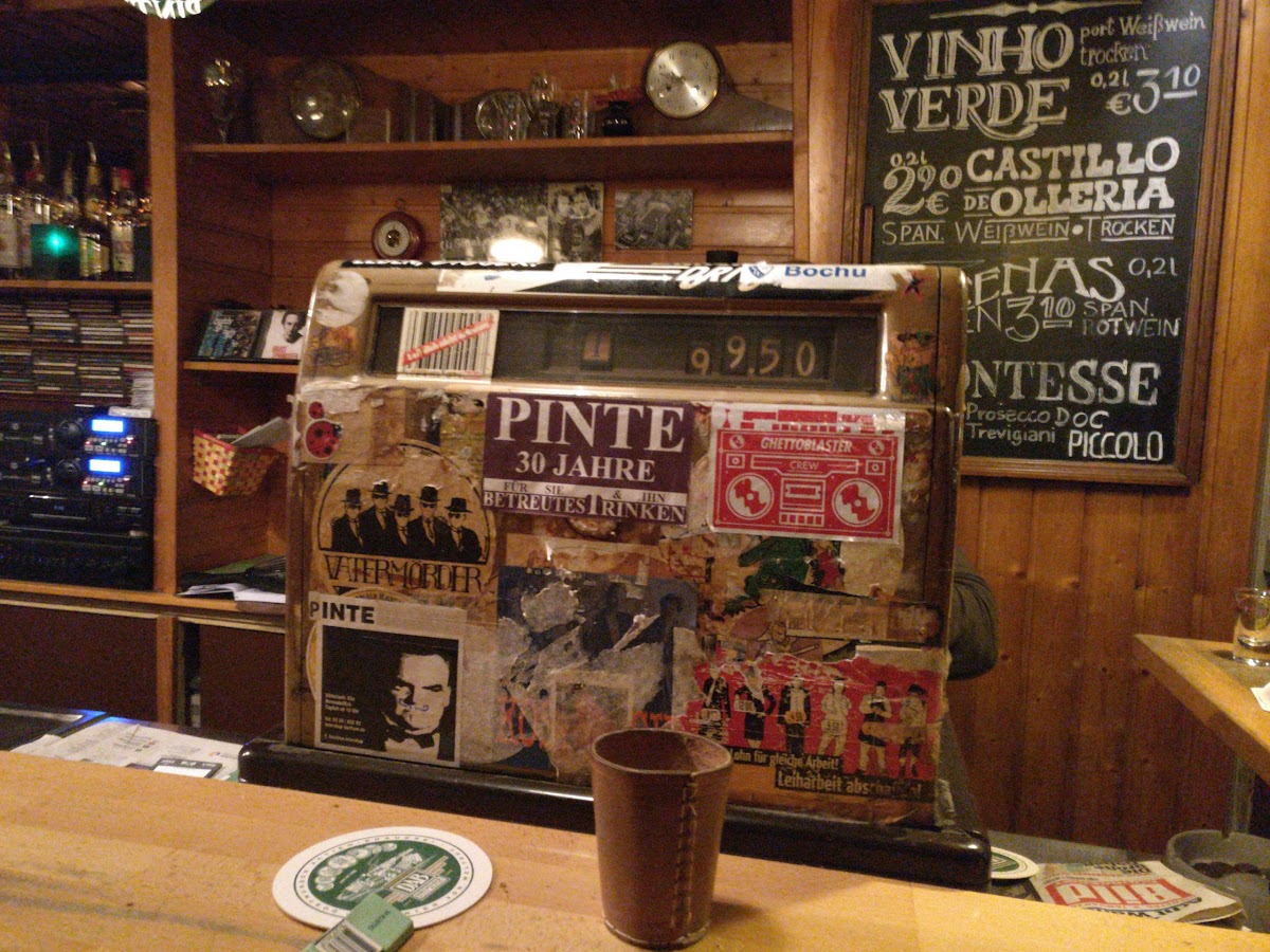 Pinte is an excellent small traditonal style German pub where you almost always get to know somebody at the bar. The personell is very, very friendly.