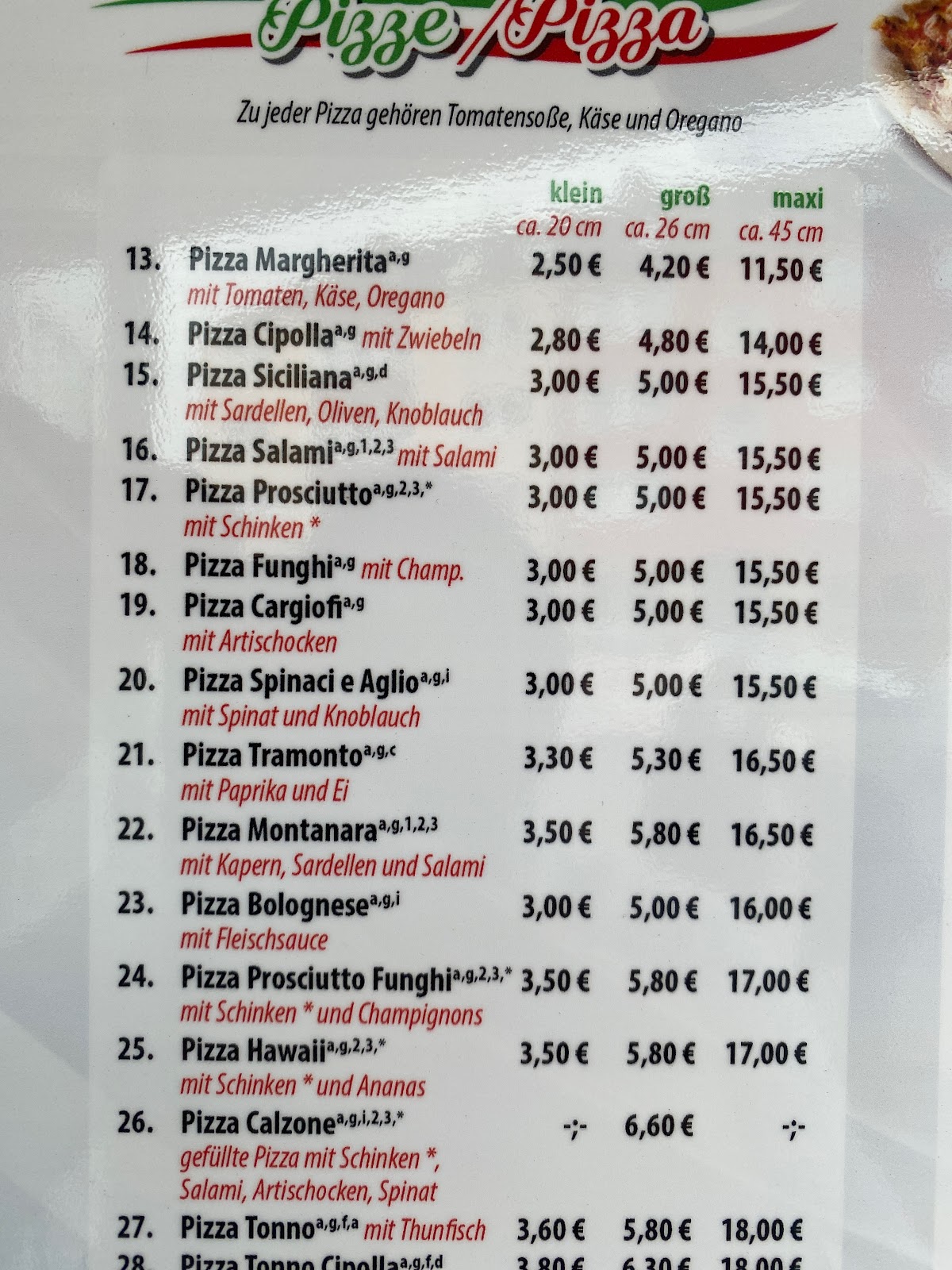 Pizza lecker, aber die Größe war optisch Recht klein für eine große Pizza