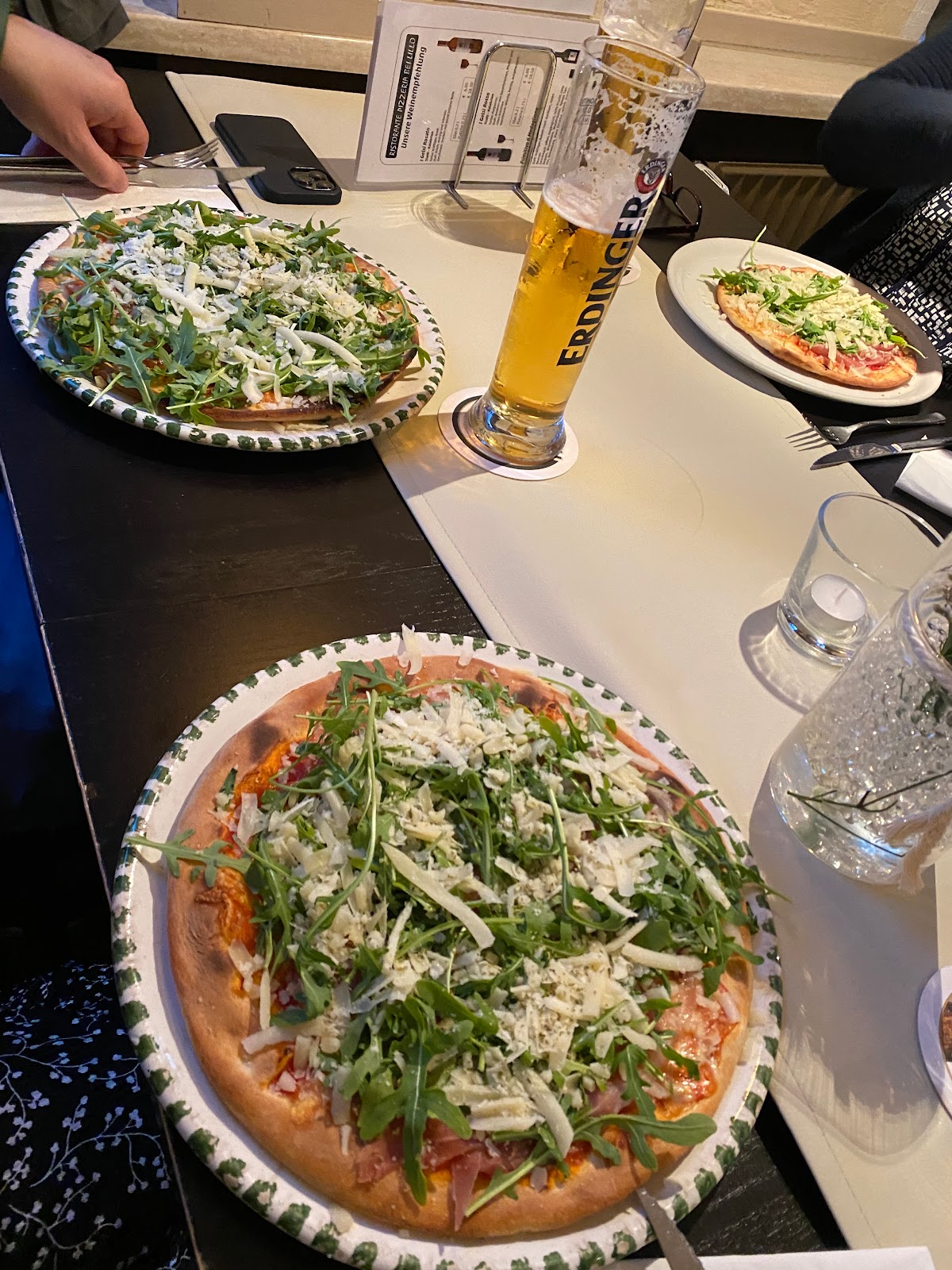 三位朋友各自点了披萨,我要了时令的牛肝菌烩饭。牛肝菌很香,端上来的时候奶香混着菌香在鼻孔里闯荡,配了一杯清爽的白葡萄酒,很是满足。