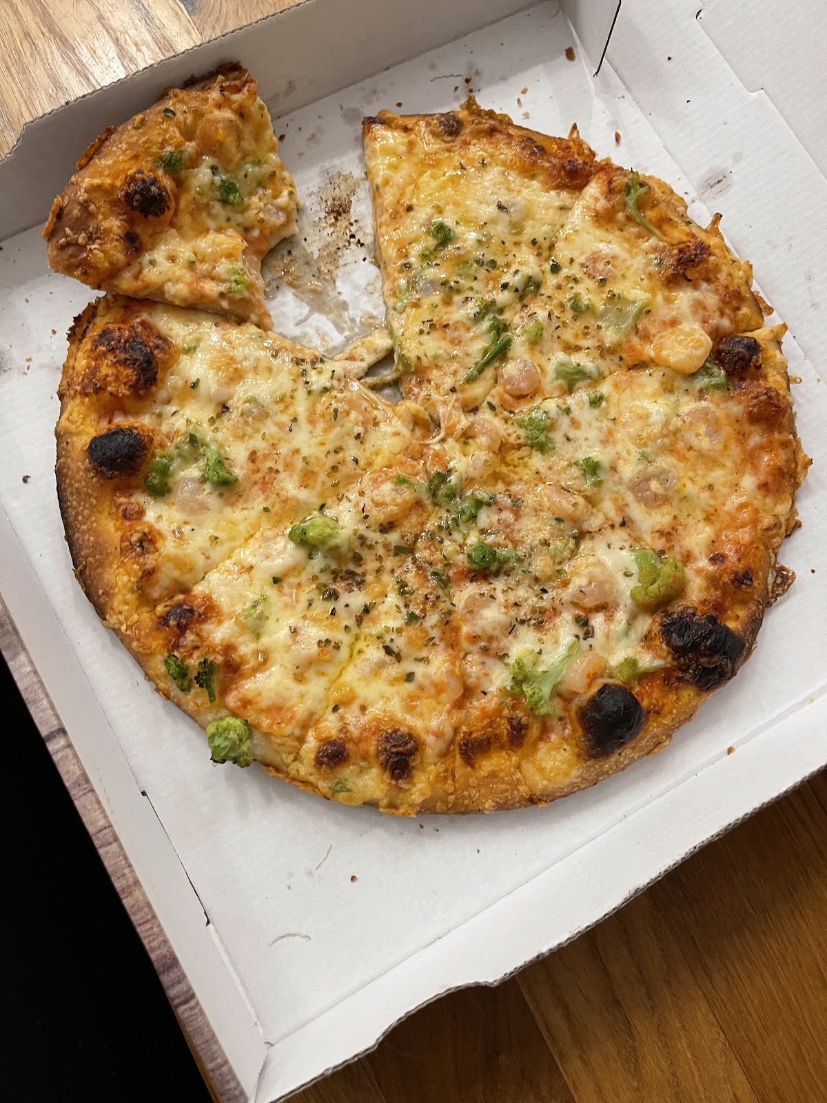 Die bestellten Pizzen waren sehr gut, das Preisleistungsverhältnis ist auch mit gut zu bewerten. Was uns nicht gefallen hat ist die Lieferzeit, es wurde uns am Telefon mitgeteilt, dass die Lieferung 45 Minuten dauern wird, haben aber insgesamt 80 Minuten gewartet. Nach 60 Minuten Wartezeit haben wir angerufen, und man teilte uns mit, dass die Pizzen in 2 Minuten da sein werden….es war leider das zehnfache…wir haben uns auf die 45 min verlassen, hätte er von Anfang an gesagt, dass es 80‘min dauern wird ca., hätten wir woanders bestellt. Darum die 2 Punkte Abzug.Pizza Salami und Krabben mit Brokkoli mit Knoblauch und Basilika.