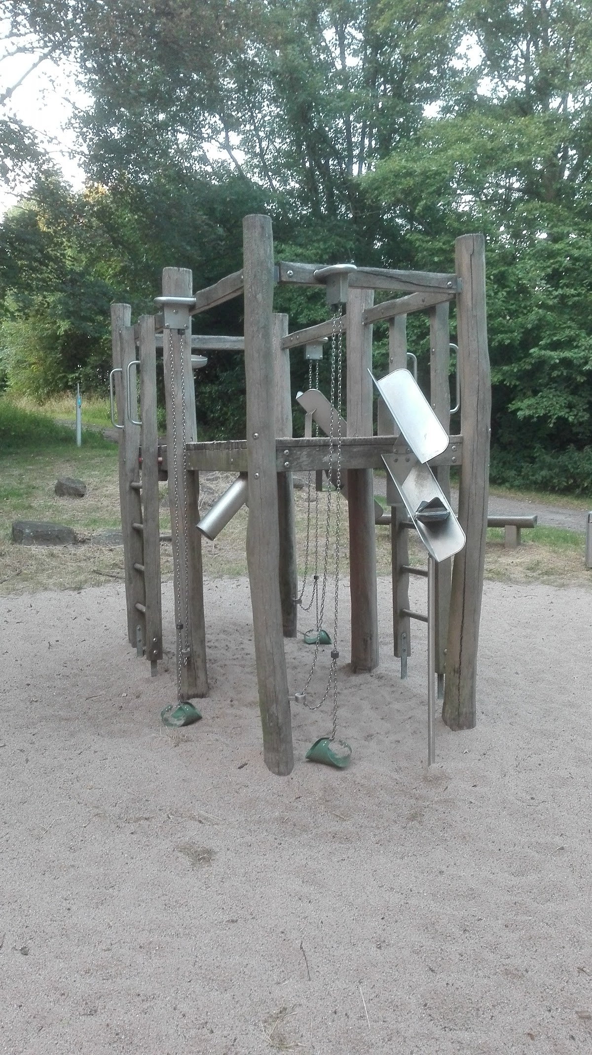 (Translated by Google) Nice playground with seating for the adults. 1 swing for large, 1 for small, 1 slide with sand area and a climbing / sand scaffolding