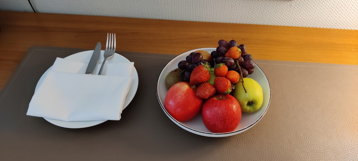 Breakfast was below expectations. Bread (Brötchen, Baguette, mini croissant) was tasteless, juice not fresh, no selection of fruits, bare minimum of cold cuts. Poor selection of cooked meals (scrambled eggs and bacon). One meagre cake. Tables outside were (beautiful terrace!) dirty - had to change my pants afterwards.