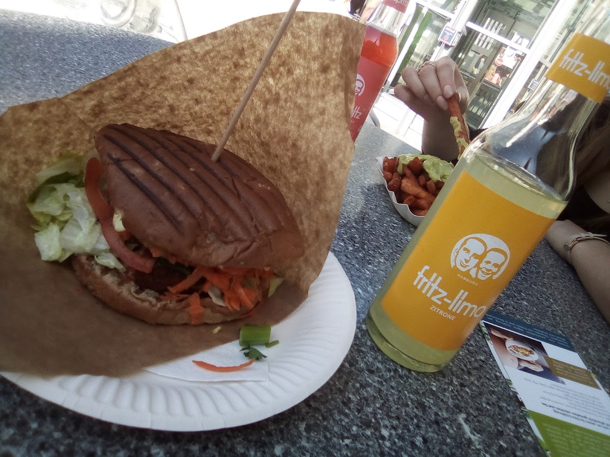 Had the Oriental sandwich, highly recommended. It's in the open market area plenty of other food options around but the only Vegan truck there. To avoid the long que, I booked via their website and order was ready to pickup within 15mins. You can pay via Card and PayPal via their website.