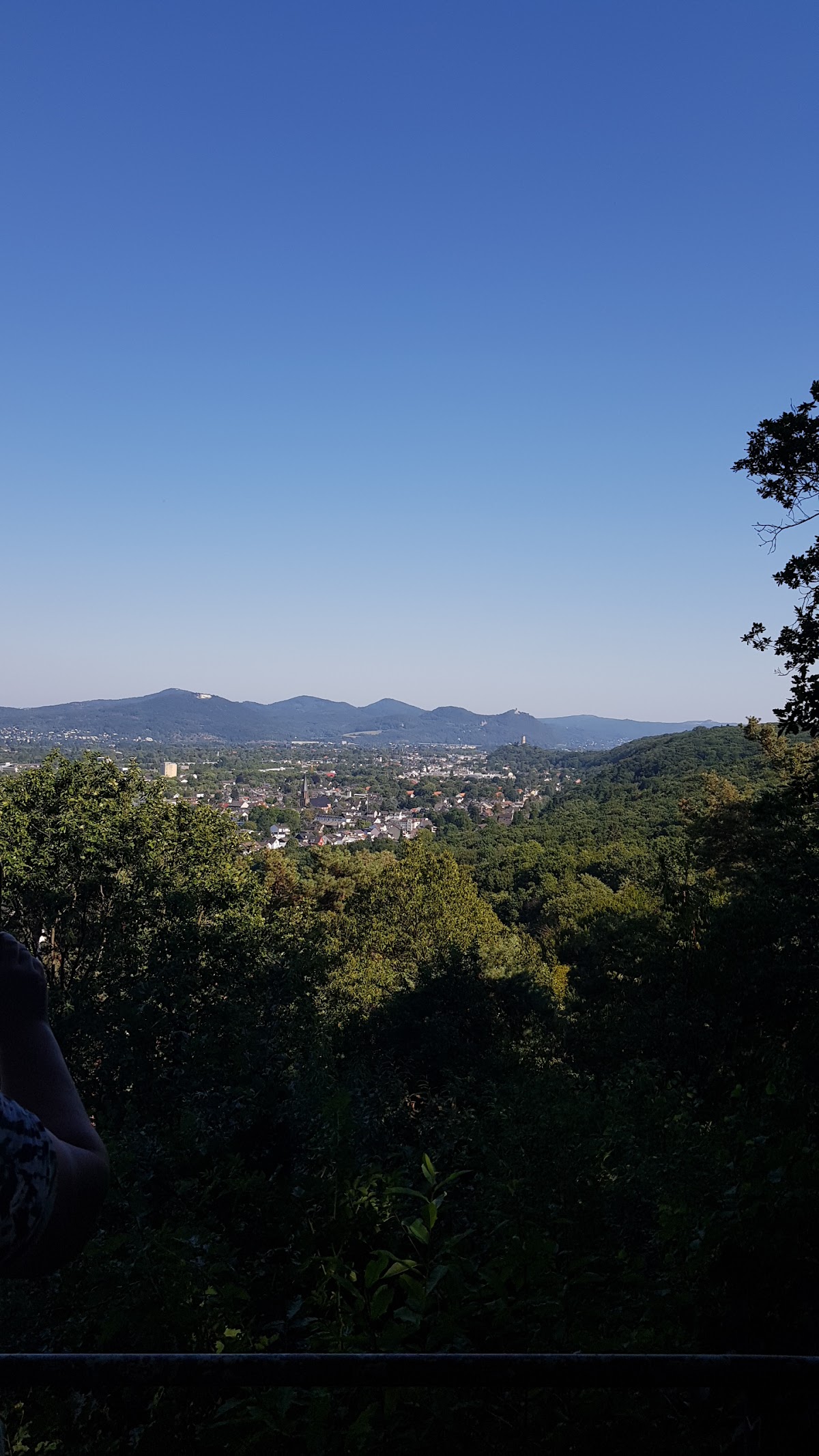 You also have a open view of the Siebengebirge across the Rhine and see clearly the Drachenburg on the Drachenfels peak (321m), the and the Steigenberger Grand Hotel on the Petersberg peak (331m).