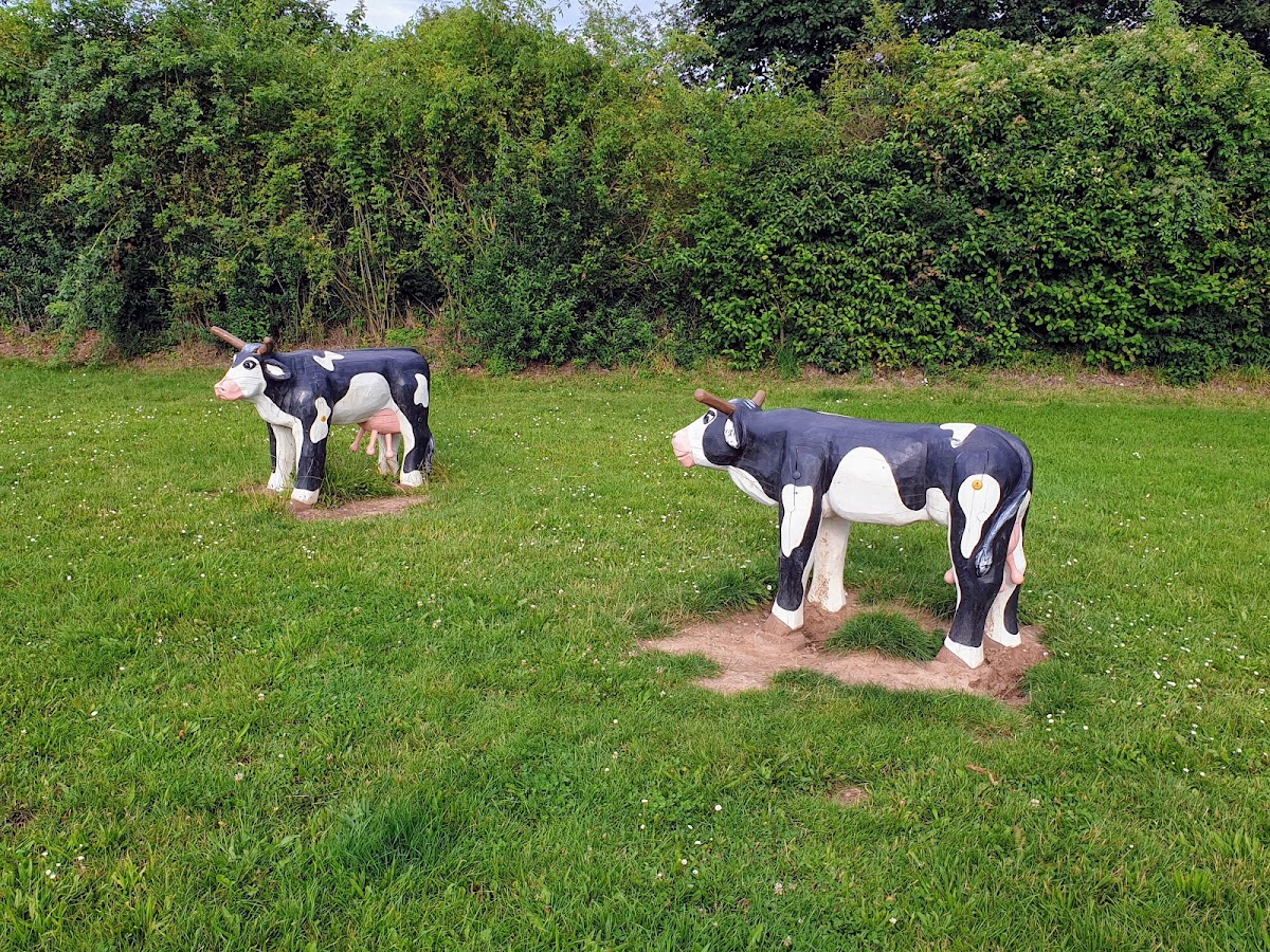 Auf dem Weg befindet sich eine große Wiese mit Sportanlagen zum Fußball oder Baskettball spielen. Auch ein kleiner Spielplatz fehlt hier nicht. Ein kleines skuriles Highlight sind die aufgestellten Plastik-Kühe, die ein wenig bizarr in der Gegend herumstehen.