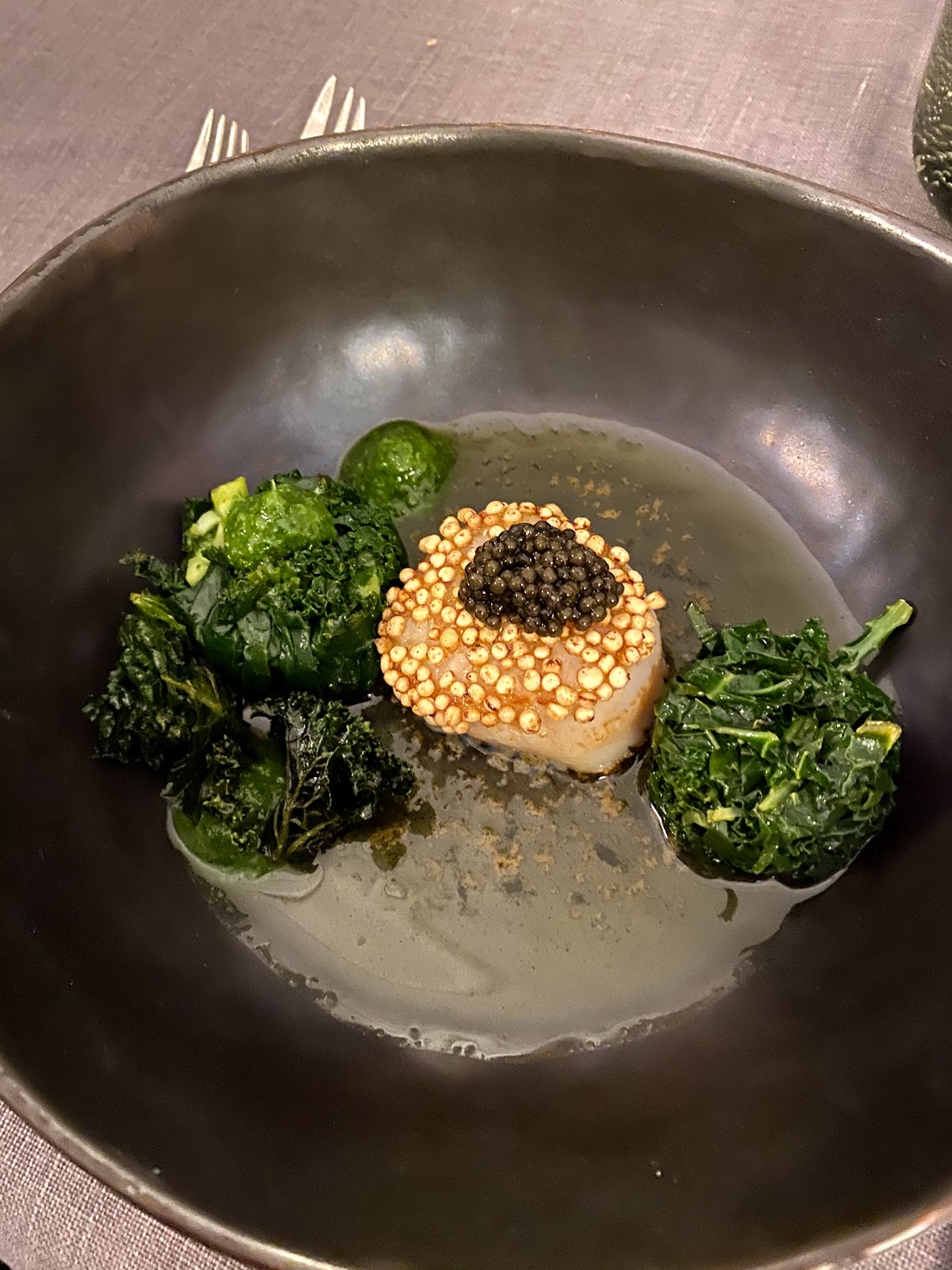 The food and atmosphere were, as hoped, stunning. My partner and I spent four hours enjoying our five course meal, which came with smaller dishes throughout. The seafood and cheeses were especially delectable, while the beef dishes were delicious but not quite as special (though take this with a grain of salt, as we are mostly pescatarian). Each course brought unexpected and exciting flavors, with gorgeous design and myriad tastes. The chef was attentive, descriptive and professional; though, he could have been a tad more inviting. Pricing was definitely expensive; however, when considering the amount and quality of food we were served, they reflected the meal perfectly. Service was optimal, with each dish cleared and glass filled as soon as one emptied.