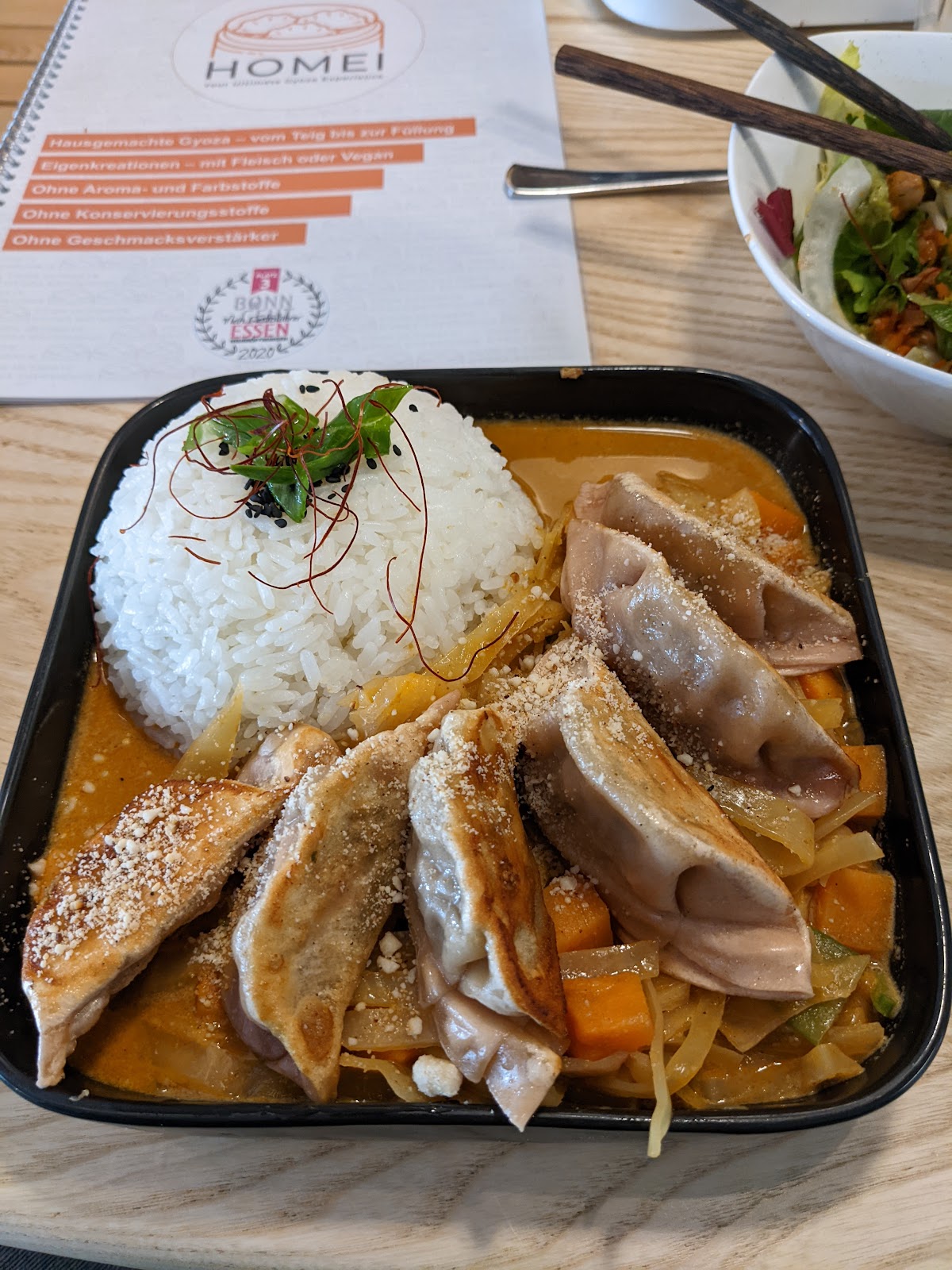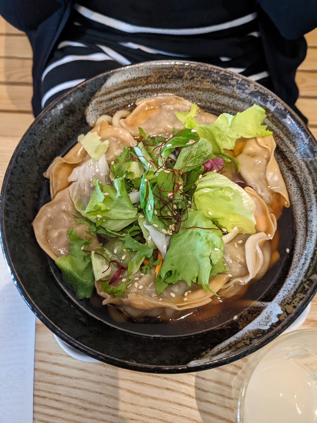 We had their lunch offer, it had lemon iced tea, sushi rice, gyozas and sauce. You can choose gyozas and sauce. Both the drink and the food were delicious. We choose gyoza mix, which had three different types of gyozas, all of them were delicious, it is hard to tell which one I liked most. The quantity was also good, it was a lot of food for 11 euros. We had matcha cheesecake for dessert and that was also very nice.