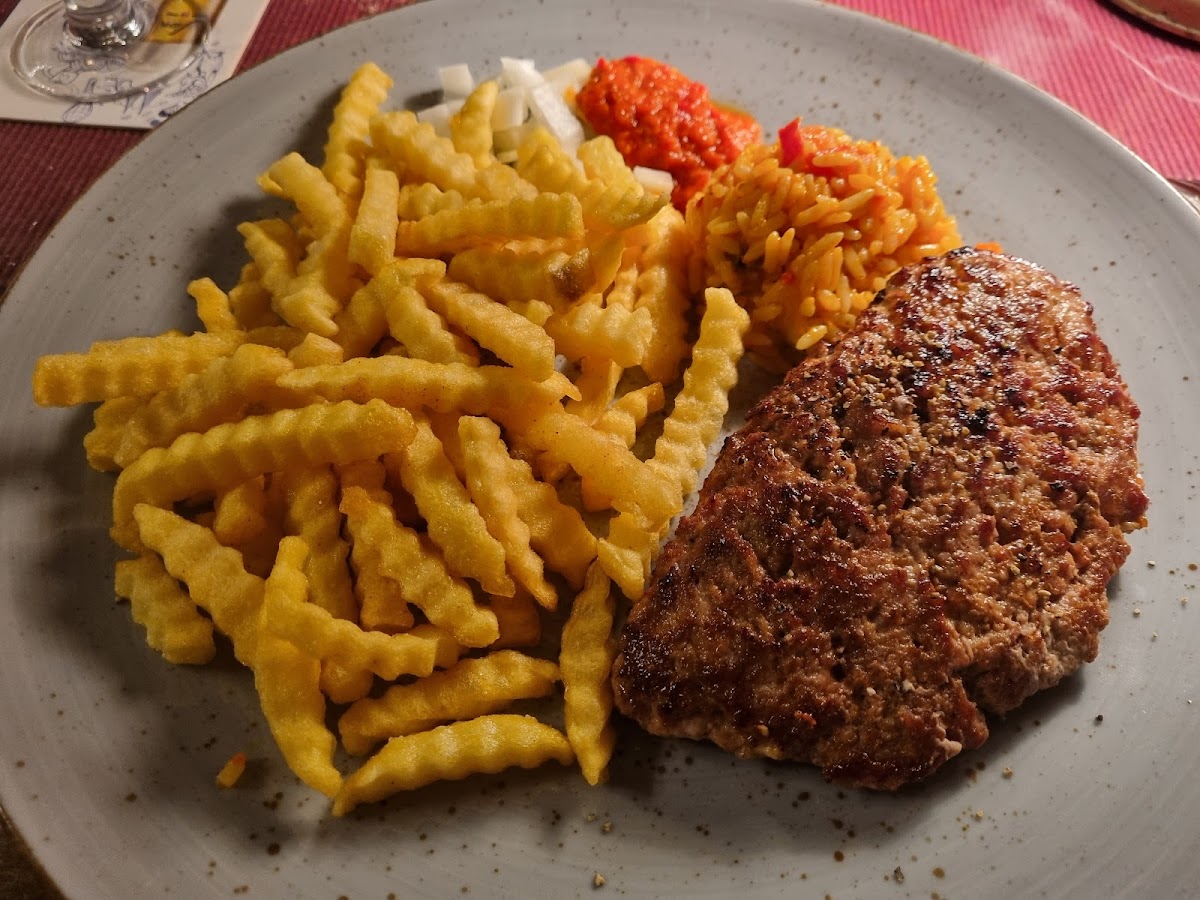 Das Ambiente ist super schön und auch einladend.Der Kellner war eher unfreundlich.Der Schafskäse war ganz lecker aber zu teuer mit 8.50 Euro.Ich hatte mit Feta gefülltes Hacksteak mit Pommes und Duvij Reis.War ganz ok aber nichts wofür man sagen würde" hey lass uns dahin gehen".Mein Mann hatte den Gemischten Grillteller.Sah alles ganz gut aus.Jedoch hat er jetzt genau wie ich richtige Magenprobleme....Der Kellner war auch nicht sehr aufmerksam,obwohl das Geschäft fast leer war.