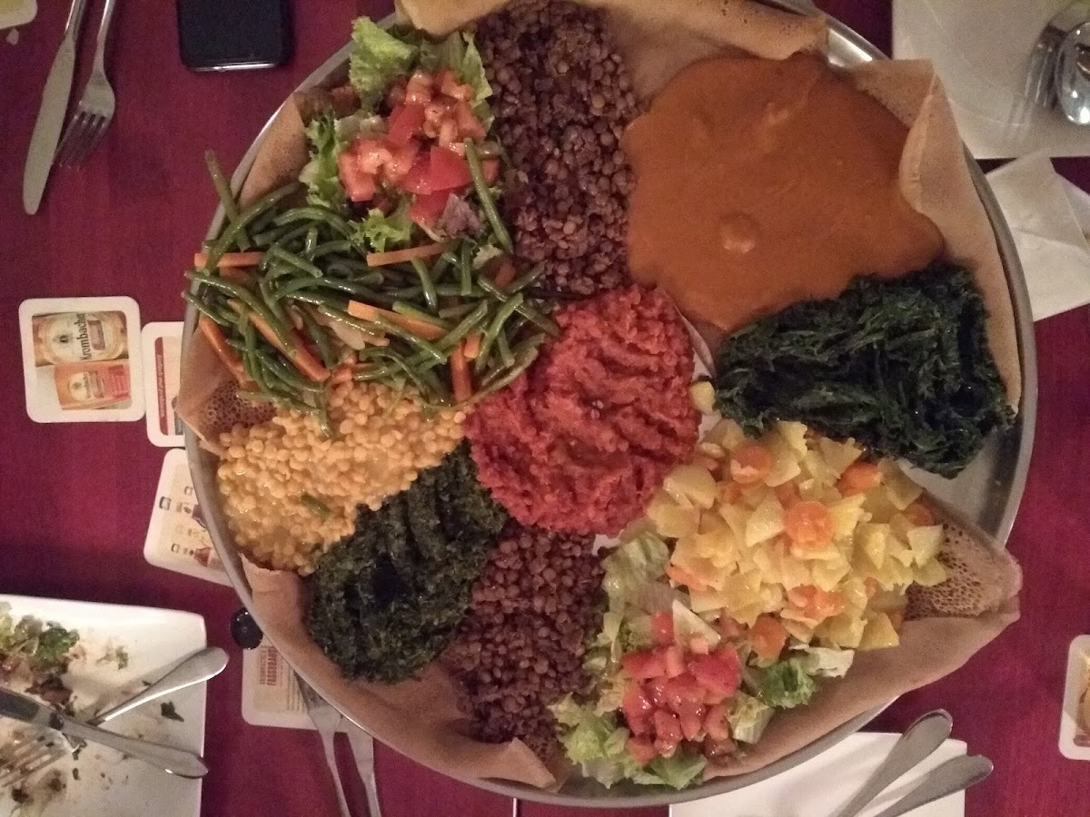 The best Eritrean place in Bonn,Germany and even Europe. Cosy atmosphere, great service, cold Eritrea/Ethiopian beer und cocktails, well fermented Mess/Tej and authentic incredibly delicious food. What can be better? ???????? Vegetarian or vegan? Habesha cuisine has a variety of vegan stews to offer, so everyone can find a dish for themselves. In the pic you can see my favorite dish, a mixed plate of different traditional stews. thank you so much ????