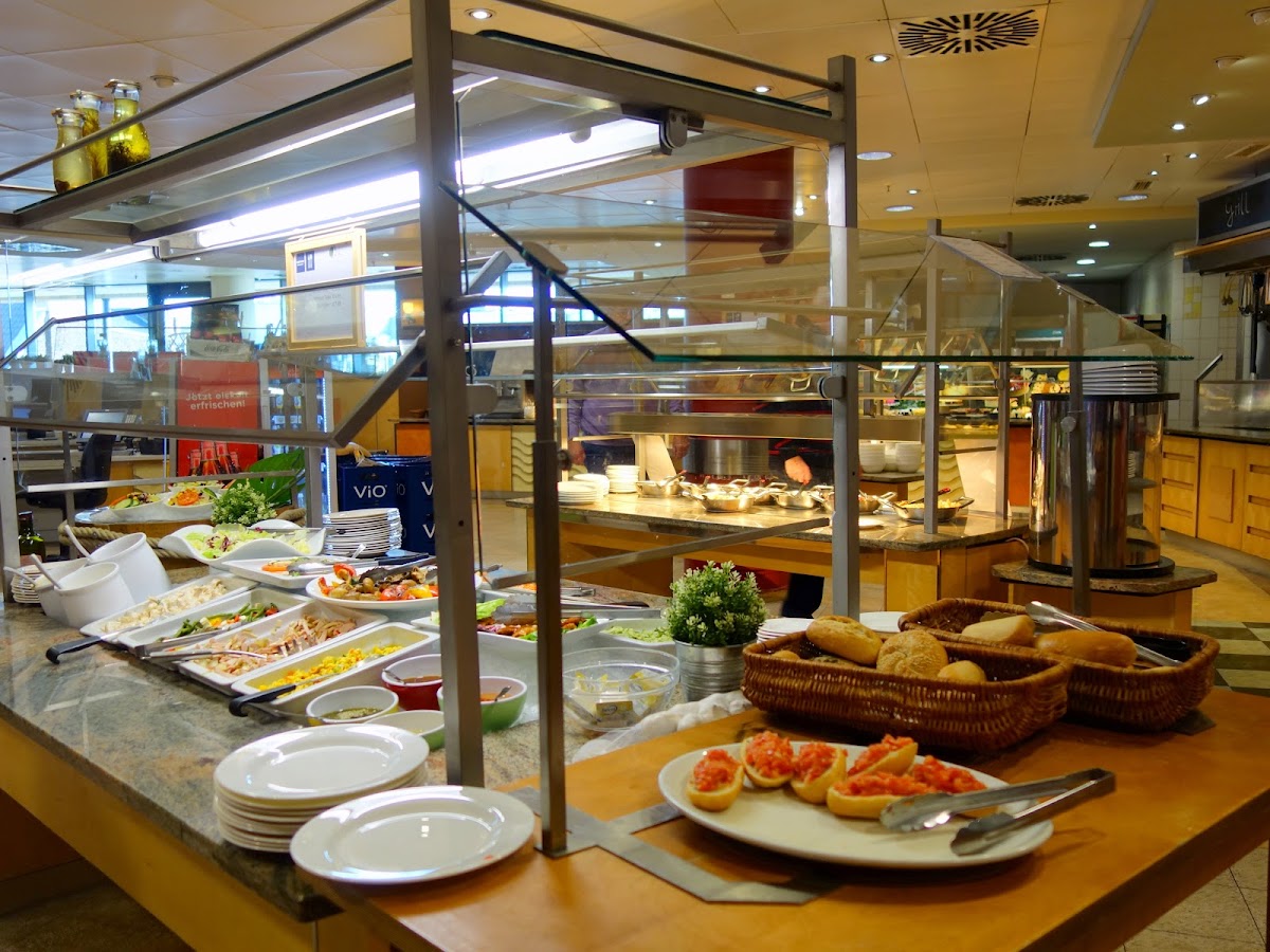 Die Speisen sind nicht ganz so günstig für Kantinen-Verhältnisse, dafür aber durchaus schmackhaft und bekömmlich. An den Tresen erhält man relativ schnell sein ausgewähltes Gericht und man wird von freundlichen und gut gelaunten Menschen bedient.