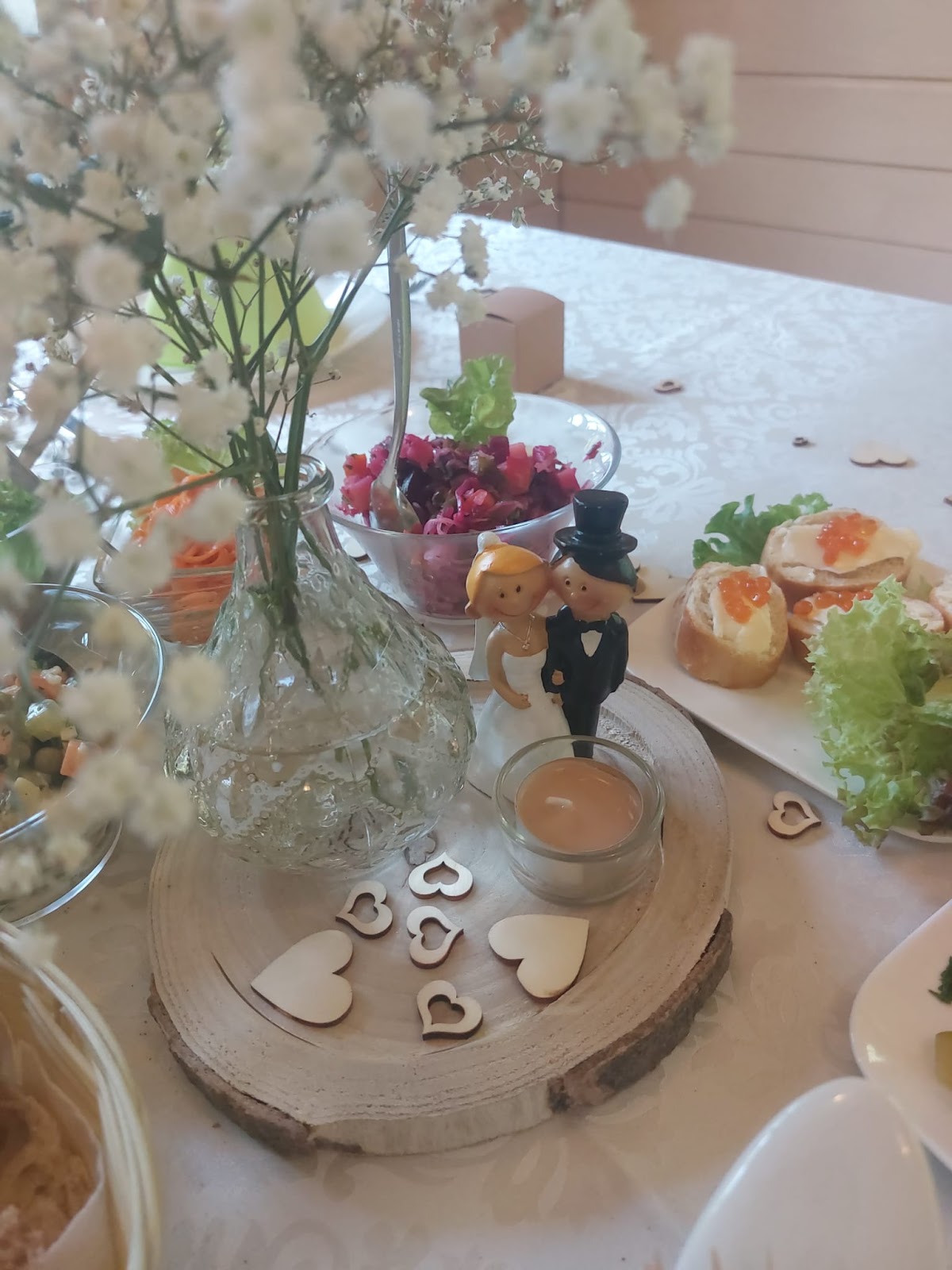 Der Tisch war nett gedeckt und die Vorspeisen waren auf dem Tisch verteilt. Von allem war etwas dabei. Das warme Buffet war auch lecker.