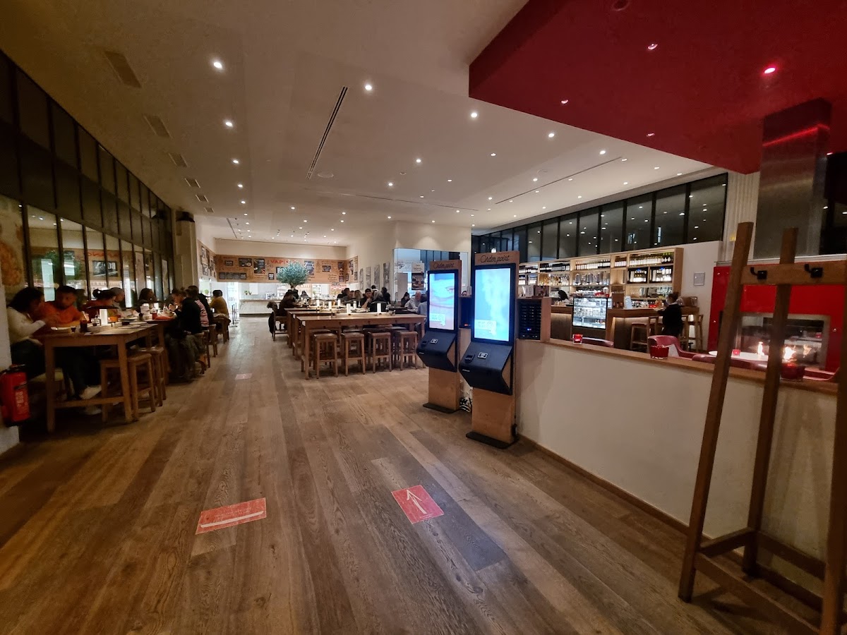 For years for pretty much every month we were loyal customers. Now we are not coming back anymore. Quality declined, portions become smaller as prices rise over the last year especially. Was a delicious place a couple of years ago, with good portions. Now we went with a family of four, paying a lot for full portions and I swear we all left hungry. The taste in general lost its richness compared to the original Vapiano. Would have never happened three years ago. Also their original Vapiano salad sauce is not as good any more and you just get a little bit. While you actually got some good bread with your salad a few years ago, now the slices are counted, thin and old. Salad felt like half the size. The kids usually have the kids portion. We ordered the adult plates for our kids and they still remained hungry. Their tomatoes were not even cut properly, the green still on and dumped listlessly on top. Two stars for the atmosphere and quick service, which is nice for kids. But sorry, we are not coming back anymore. And no, we are not giving a second chance as we gave at least 10 chances over the last year and it got worse every time.