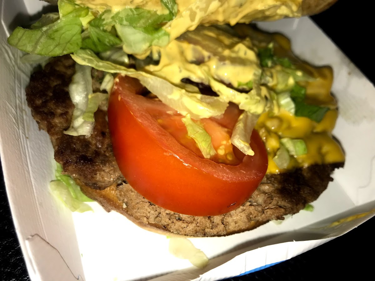 I ordered the Big Lauginator Bacon: a FAT slice of tomato but where was the bacon?!!! Just clap together!!!!