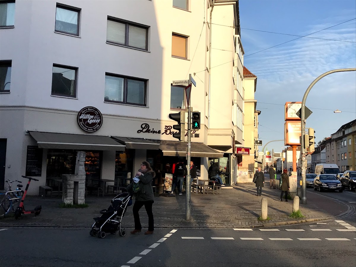 The location is pretty great, with the Airport tram stopping just outside the front door. There is extensive seating for people with a bit of time to spare as well. The selection of pastries is broad, and they have a decent assortment of teas (for a bakery).