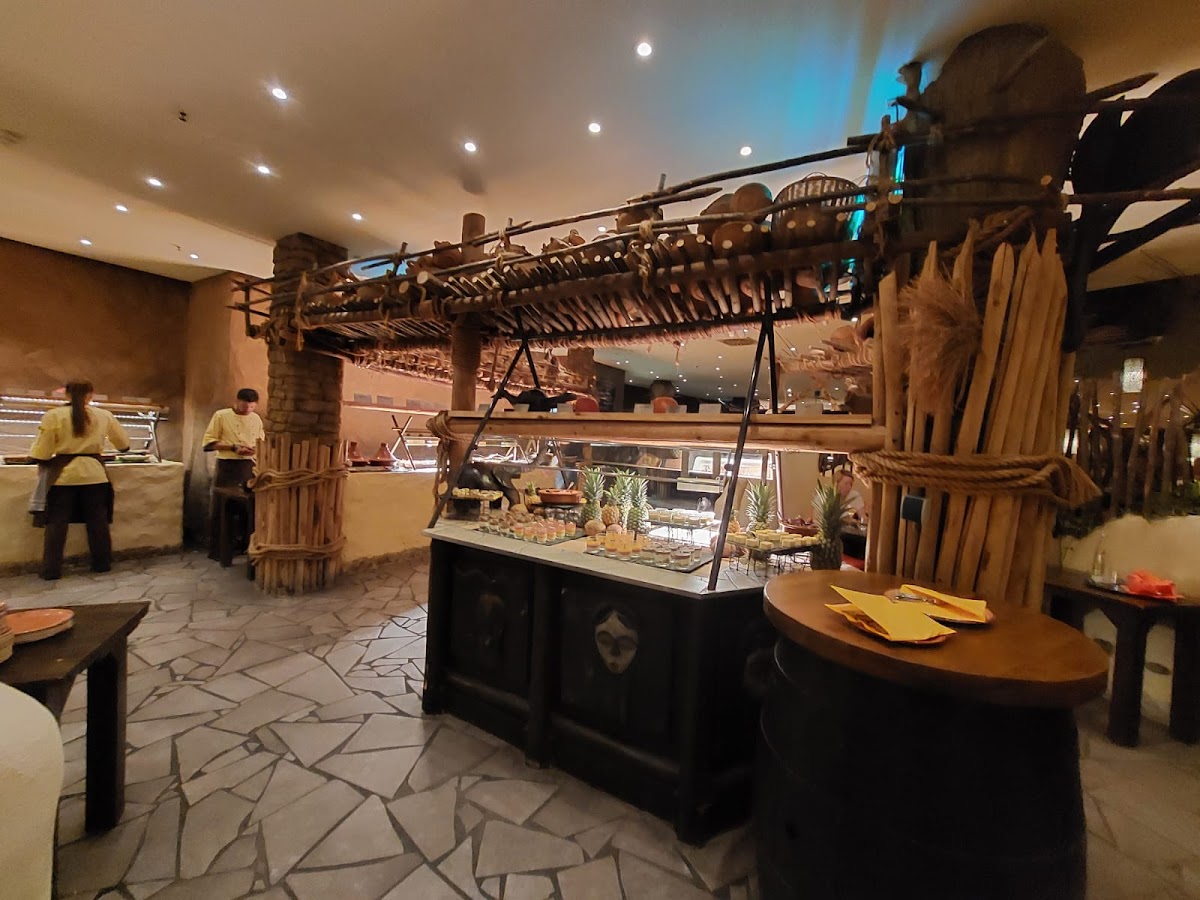 The restaurant is very good. The food is delicious with different kinds of meat, salads and deserts. The menu is very rich and people can try many exotic things. It is very beautiful inside.