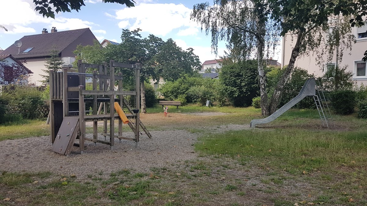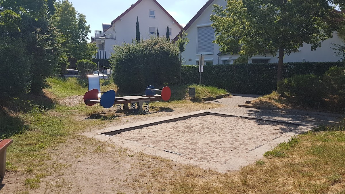 Etwas spartanisch ausgestatteter Spielplatz mit wenig Schatten und wenigen Sitzgelegenheiten. Die Ausstattung umfasst eine schöne Rutsche in Katzenoptik, eine große Wippe und einen Sandkasten. Der Spielplatz ist zu großen Teilen nicht umzäunt.