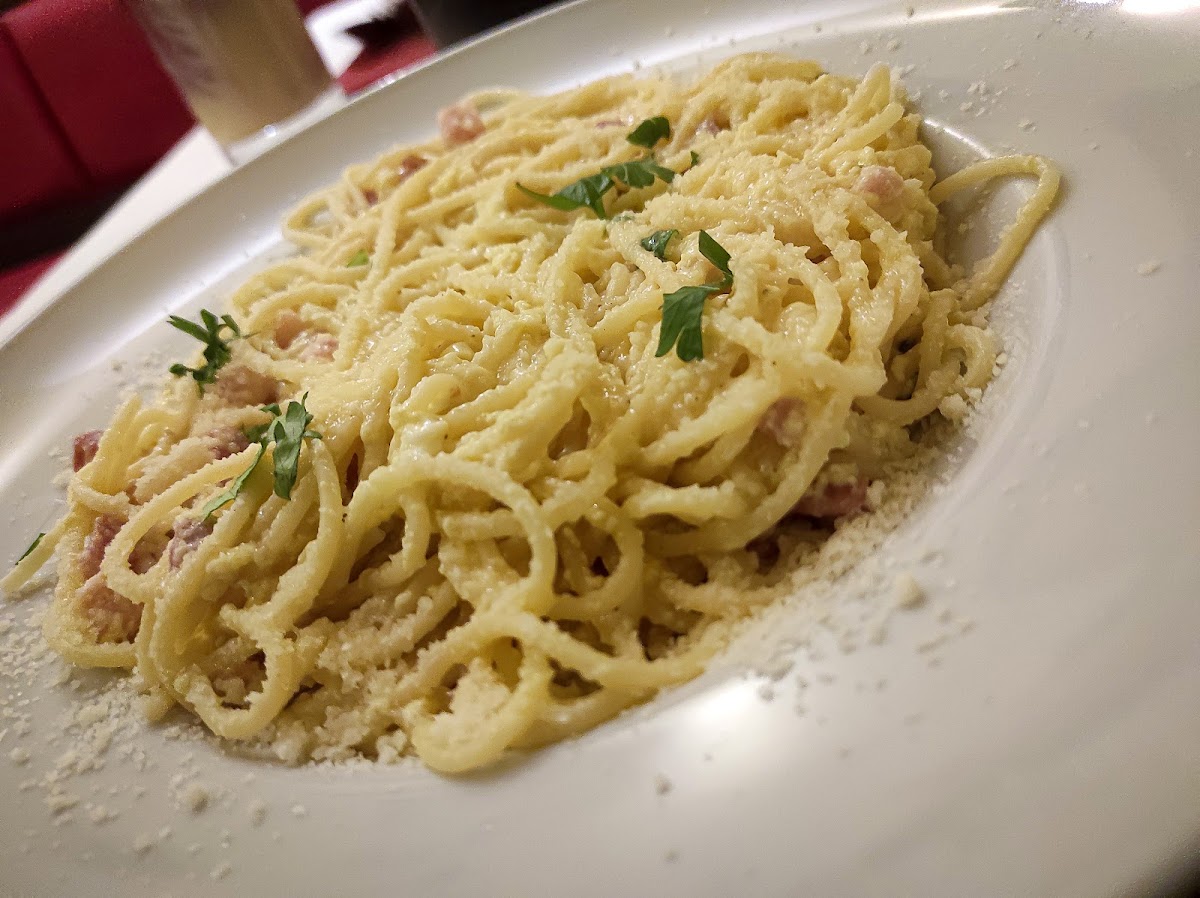 Ich habe mich für die Carbonara entschieden und anders als in der Karte stehend mit Ei bestellt. So soll es natürlich sein!