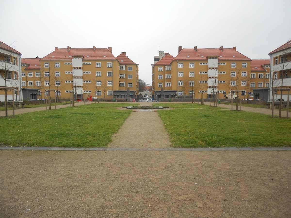 Größere Grünfläche im Viertel. Hat bestimmt schon bessere Zeiten gesehen.