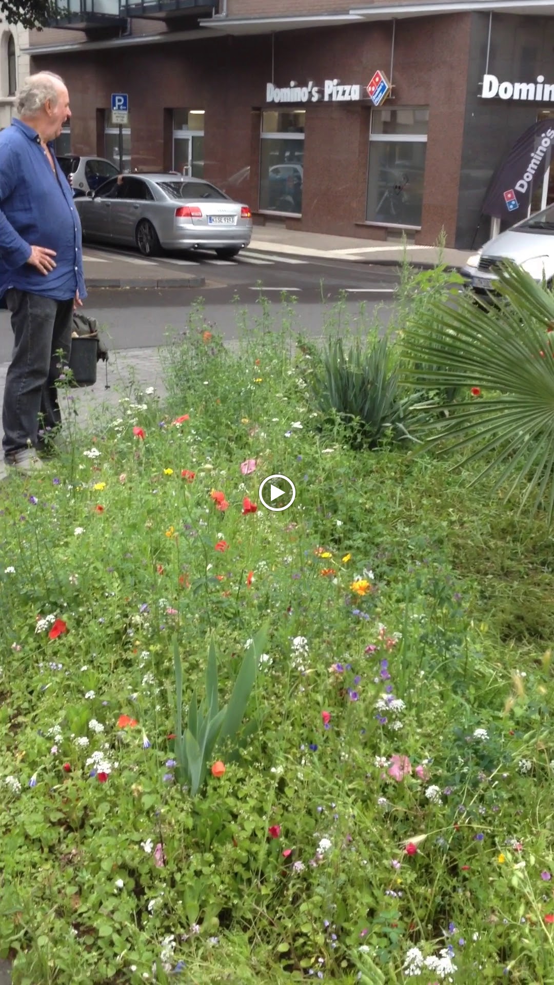 Ein liebevoll bepflanzter Kreisverkehr mit Bananenpflanzen mitten in der Kölner Südstadt.