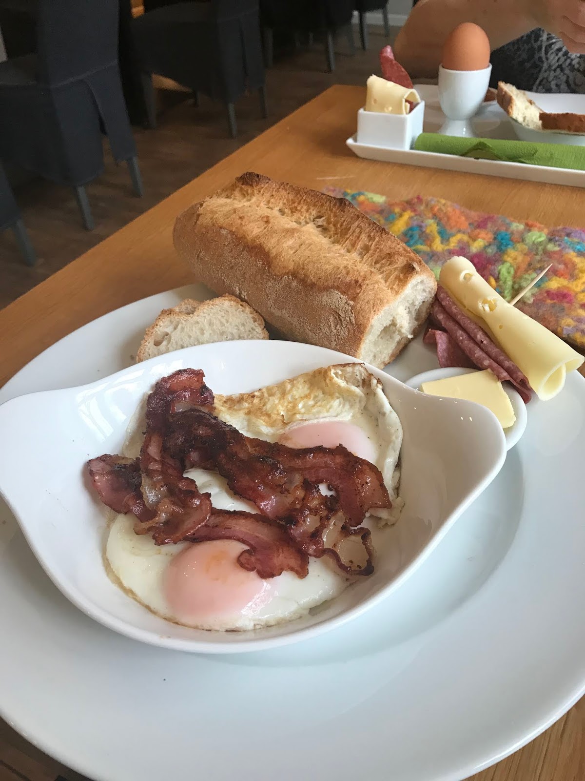Das Brot welches zusammen mit den anderen Frühstücks Cerealien gereicht wurde entpuppte sich Leider als trocken, wohl vom Vortag.Man gab sich Mühe das mit Ambiente wett zu machen.Preis Leistung gegenüber Mitbewerbern was Menge und Quallität angeht ist noch Luft nach oben.